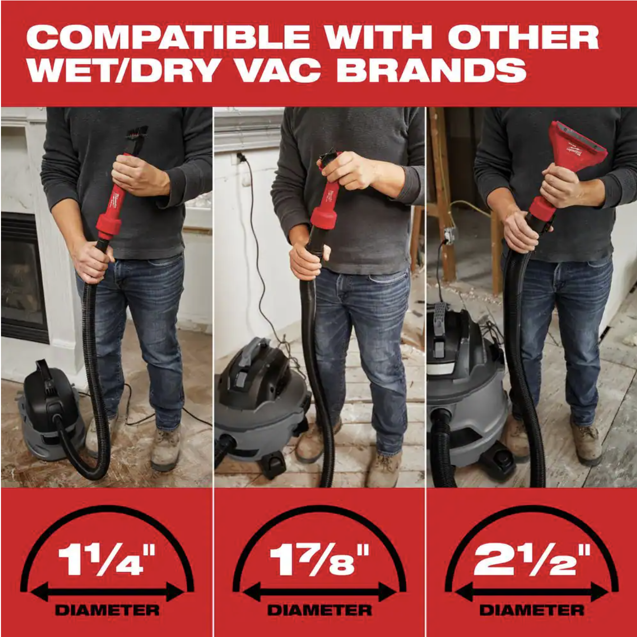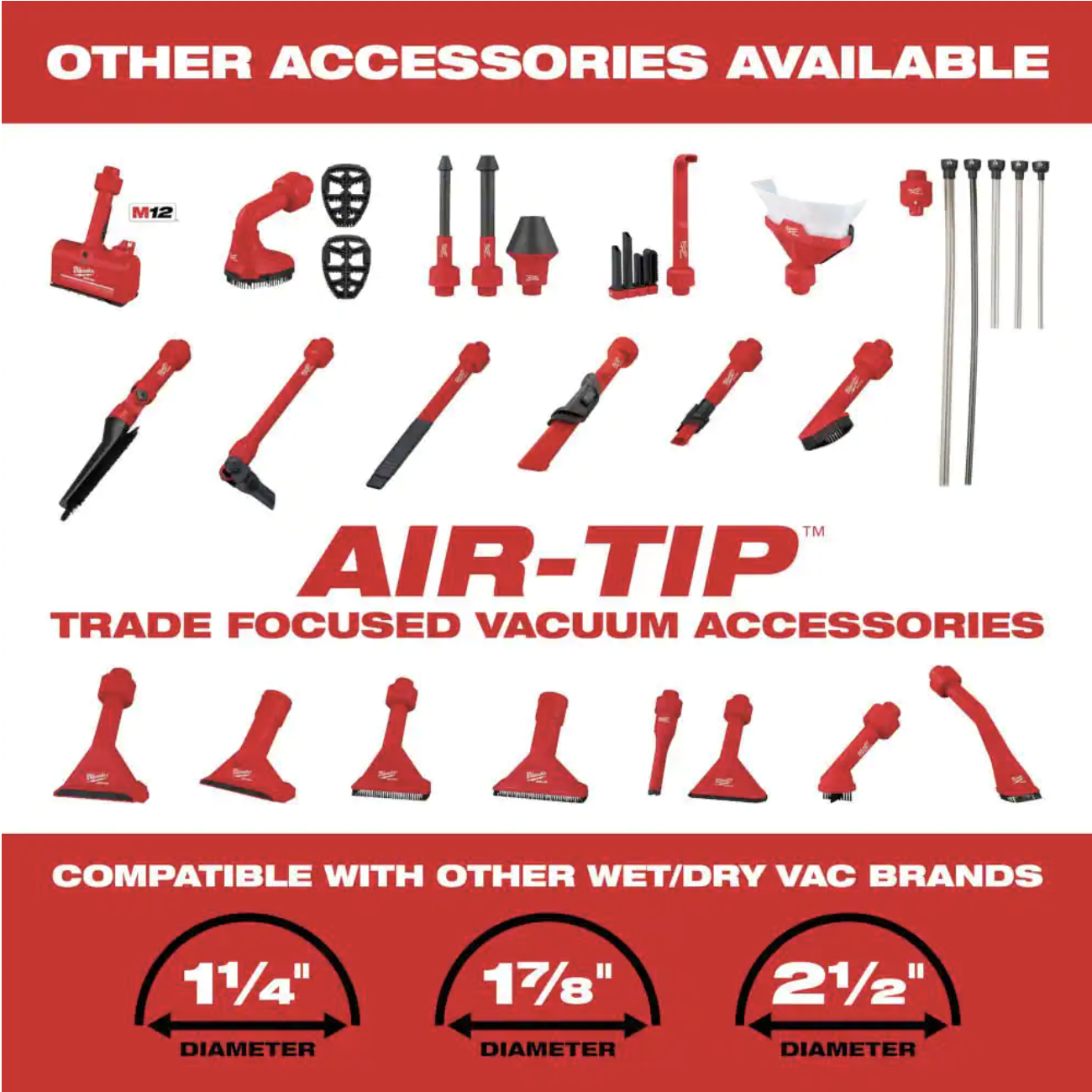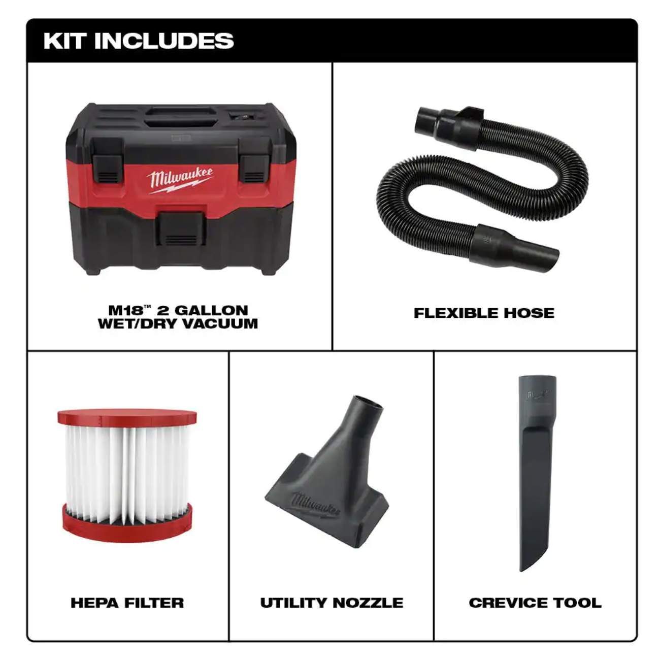 Milwaukee M18 FUEL 6 Gal. Cordless Wet/Dry Shop Vac W/Filter. Hose and AIR-TIP 1-1/4 in. - 2-1/2 in. Brush. Crevice and Nozzle Kit