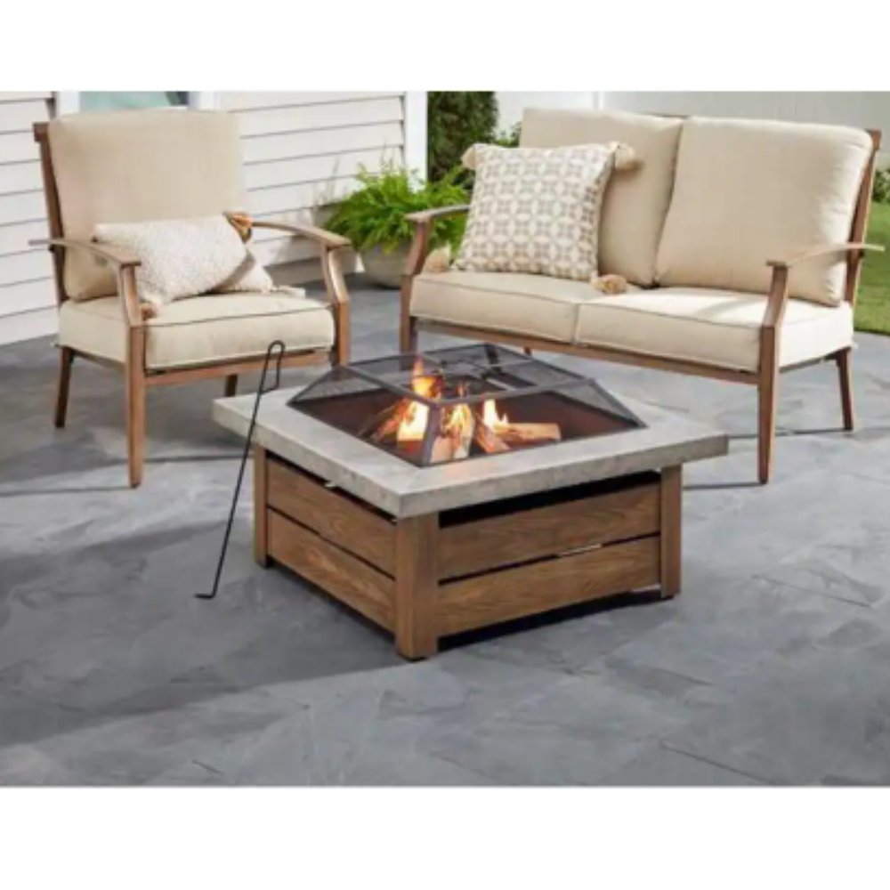 Hampton Bay Montrose Diameter 30 in x H23.8in. Round Steel Wood Burning Fire Pit with Texas Decoration