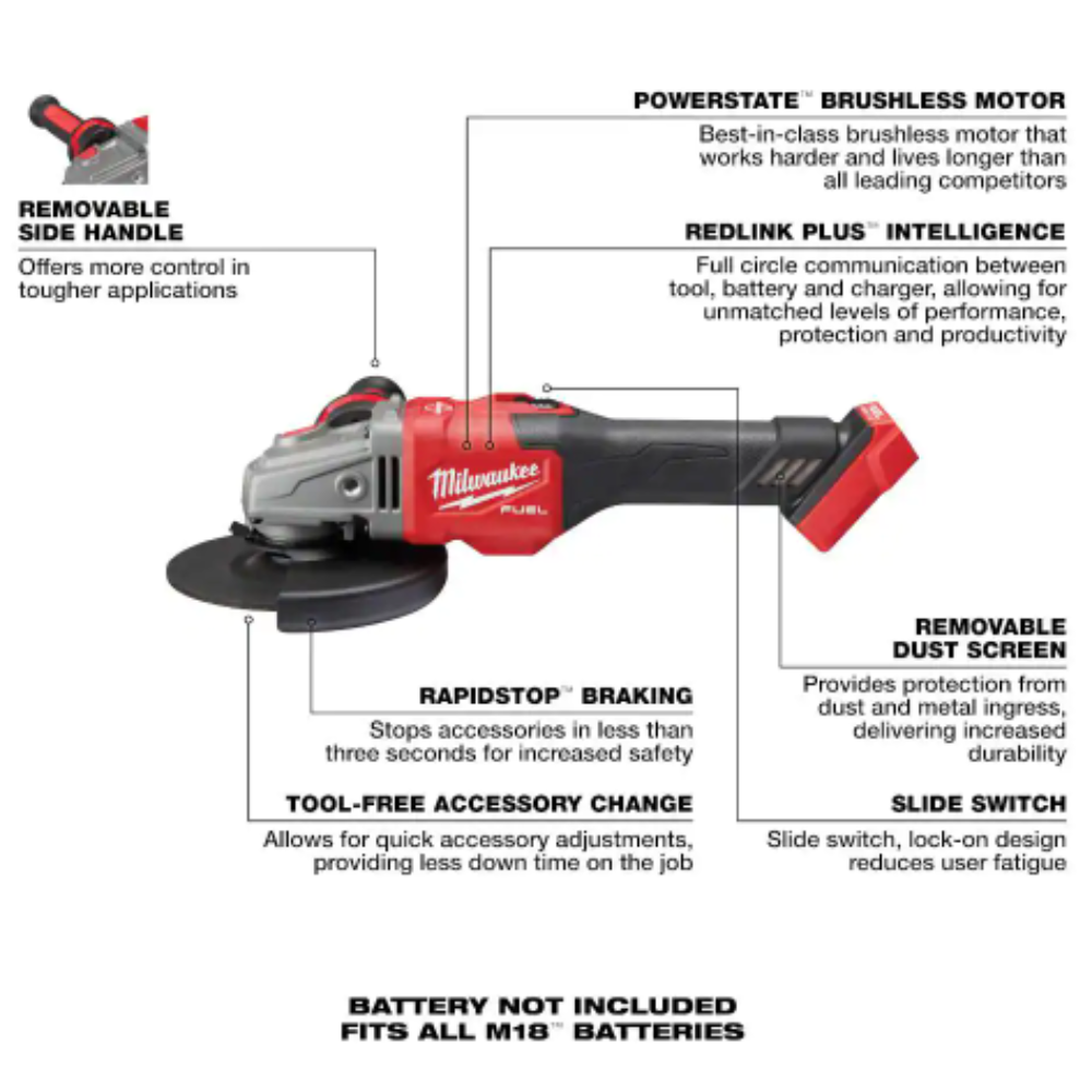 Milwaukee M18 FUEL 18V Lithium-Ion Brushless Cordless 4-1/2 in./6 in. Grinder with Slide Switch with Lock On (Tool-Only)