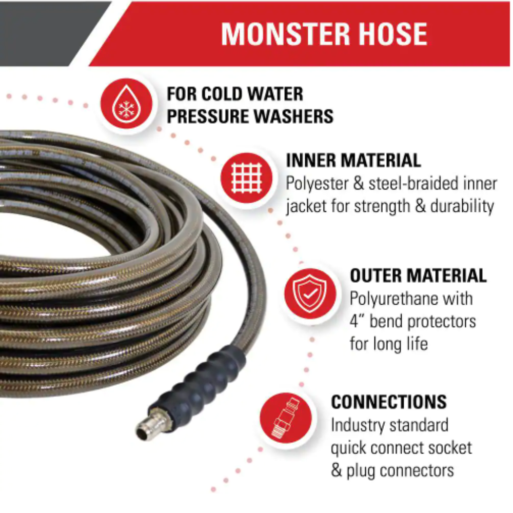 Simpson Monster Hose 3/8 In. x 100 ft. Replacement/Extension Hose with QC Connections for 4500 PSI Cold Water Pressure Washers