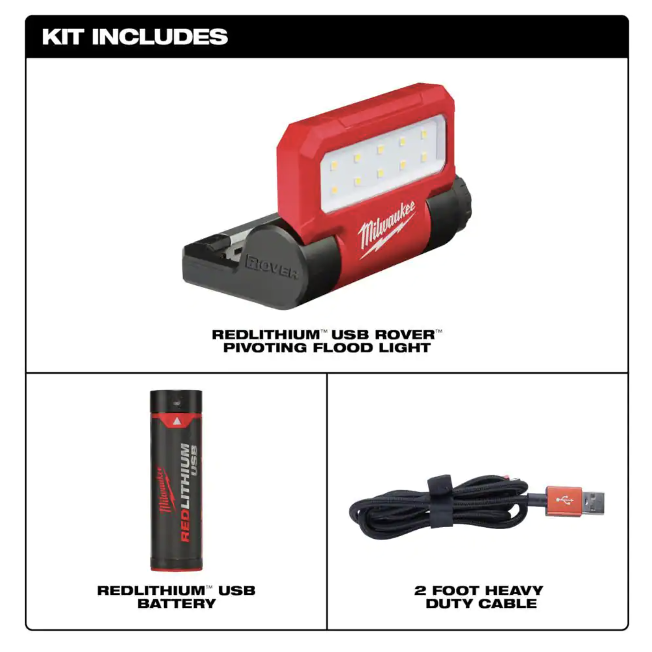 Milwaukee 550 Lumens LED REDLITHIUM USB Pivoting Flood Light (2-Pack)