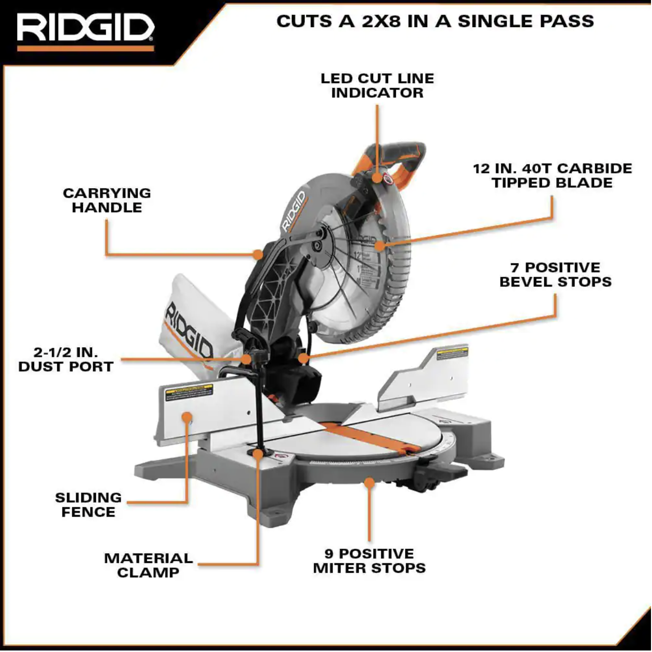 Ridgid 15 Amp Corded 12 in. Dual Bevel Miter Saw with LED Cutline Indicator