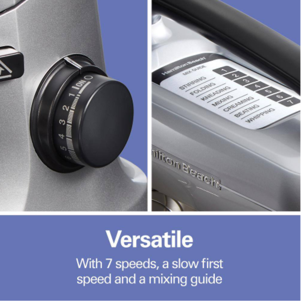 Hamilton Beach 4 Qt. 7-Speed Stainless Steel Stand Mixer with Flat Beater. Dough Hook and Whisk