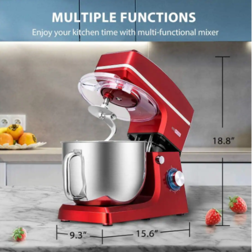 Vivohome 7.5 qt. 6-Speed Red Tilt-Head Electric Stand Mixer with Accessories and ETL Listed
