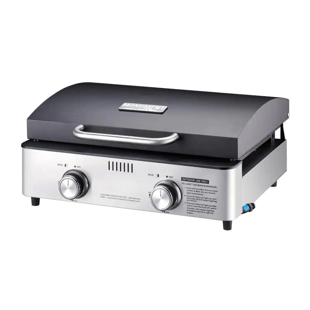 Monument Grills 2-Burner Portable Table Top Propane Gas Griddle In Stainless Steel With Locking Lid