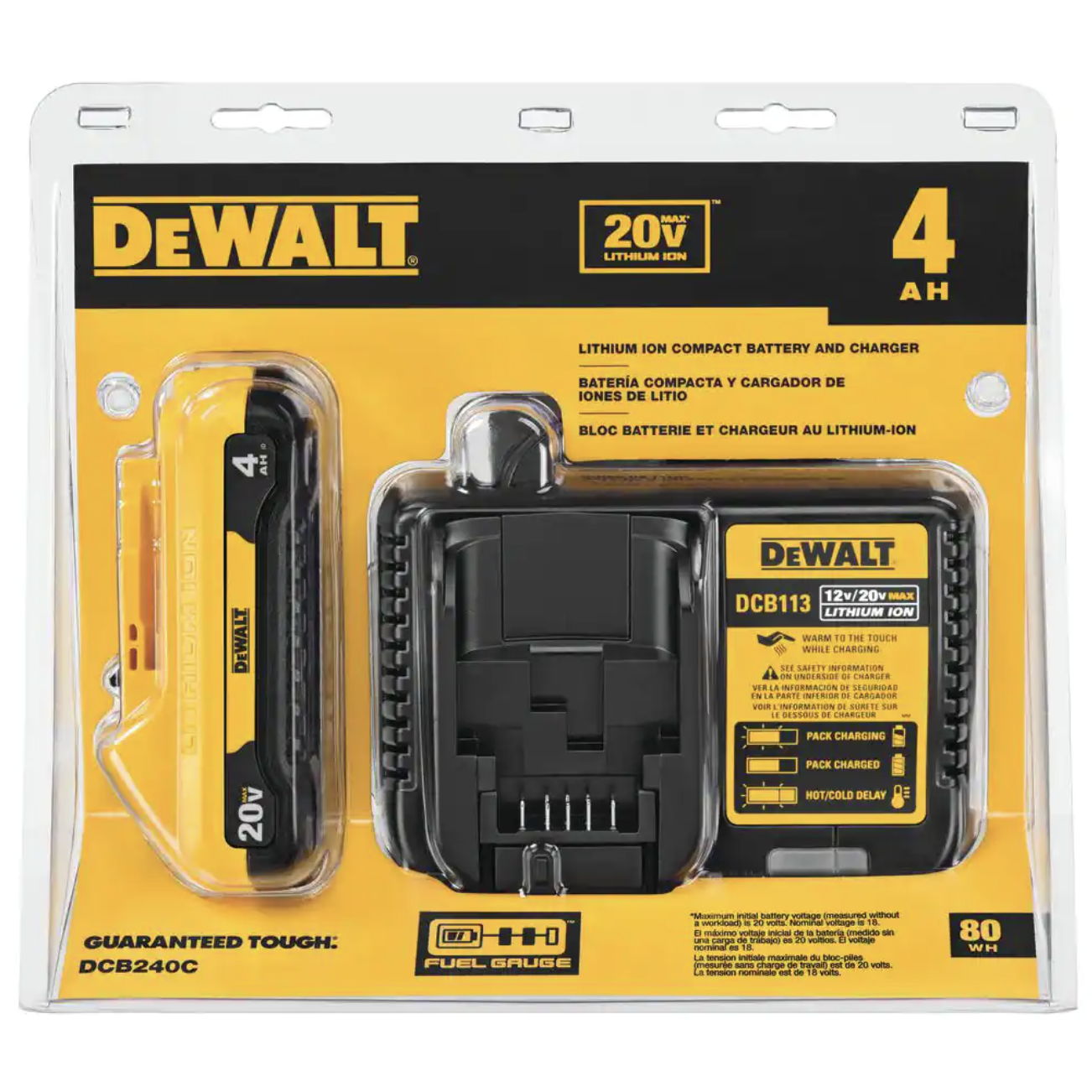 Dewalt 20V MAX 125MPH 450CFM Cordless Brushless Handheld Blower with 20V Compact Lithium-Ion 4Ah Battery & 12V to 20V Charger