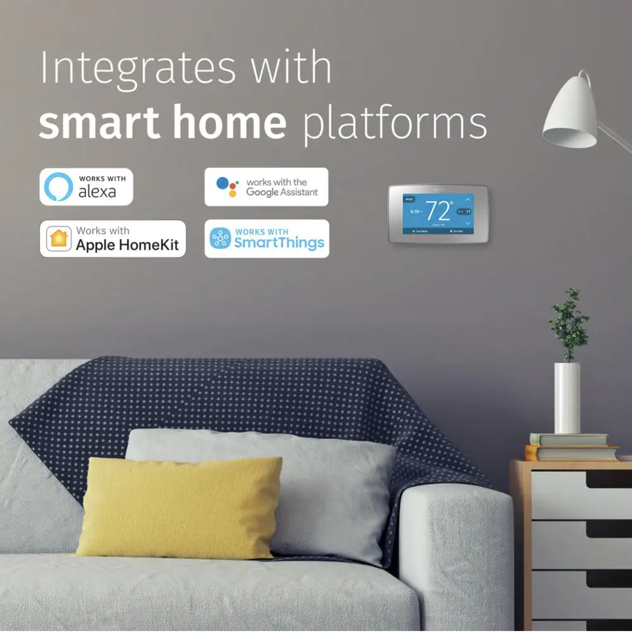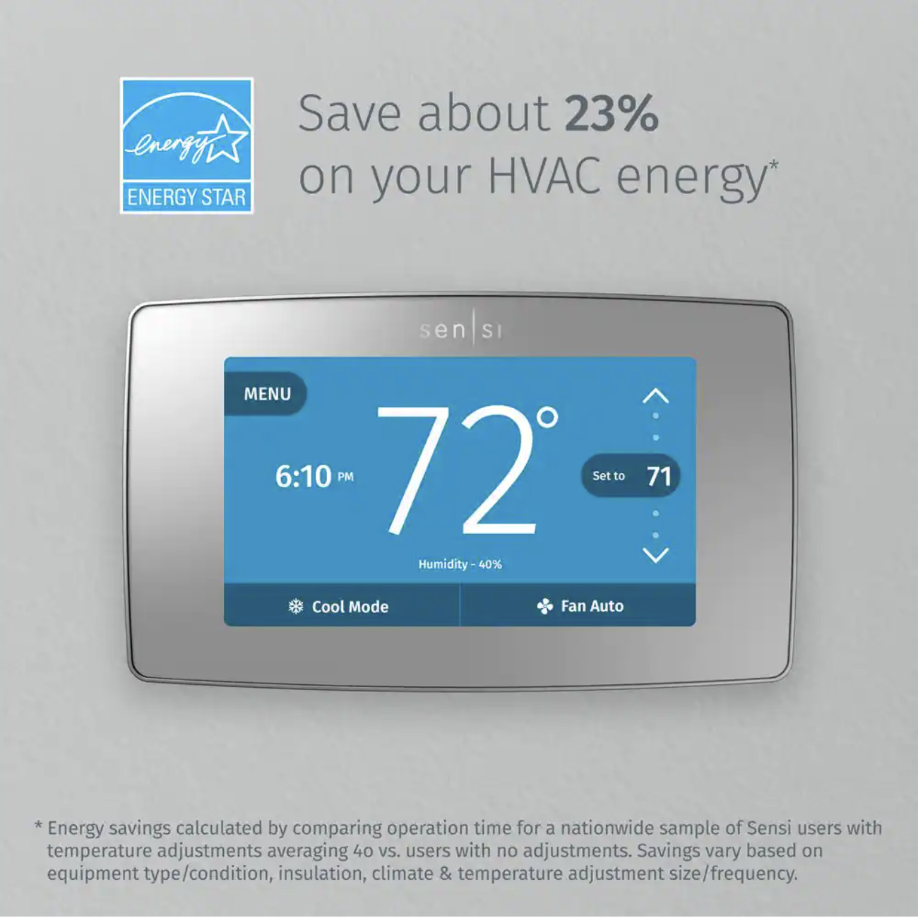 Emerson Sensi Touch Smart 7-Day Programmable Thermostat with Touchscreen Color Display. C-Wire Required. Silver