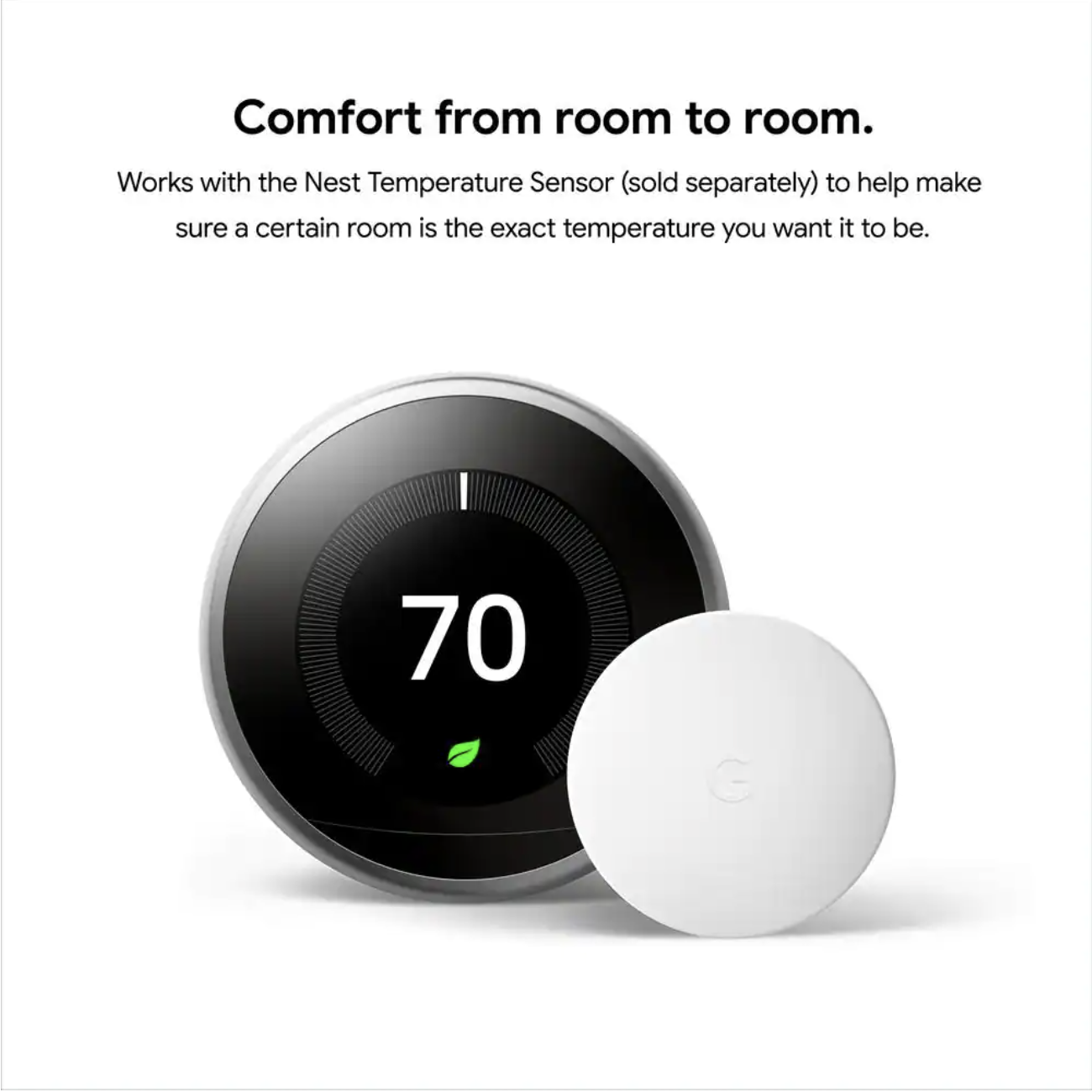 Google Nest Learning Thermostat - Smart Wi-Fi Thermostat. Polished Steel
