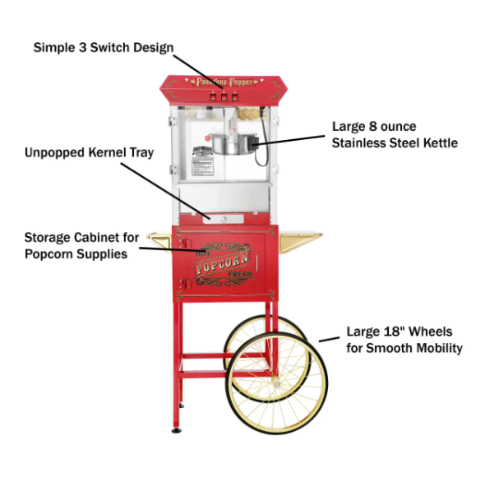 Great Northern Pasadena 850-Watt 8 oz. Red Hot Oil Popcorn Machine with Cart