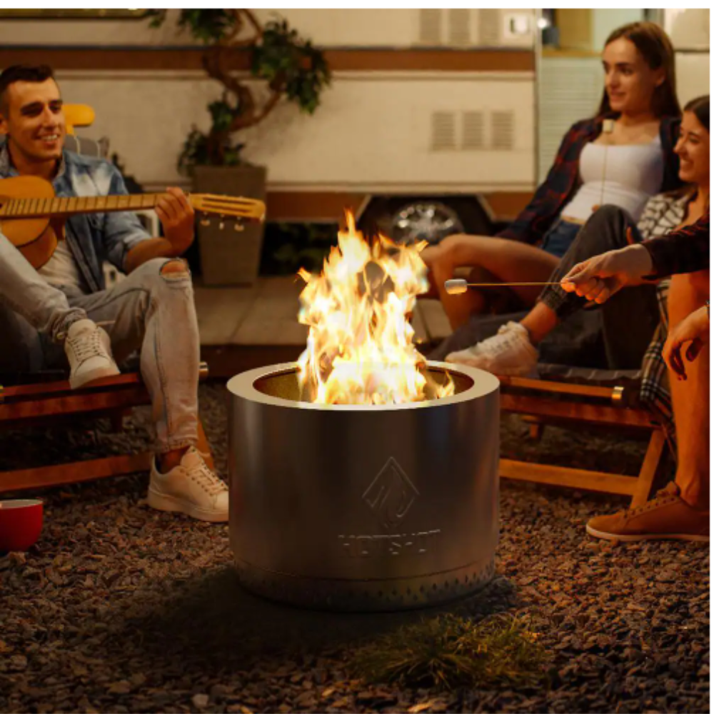 HotShot Explorer Portable Low Smoke 19.5 in. Round Wood-Burning Fire Pit in Stainless Steel with Carry Bag