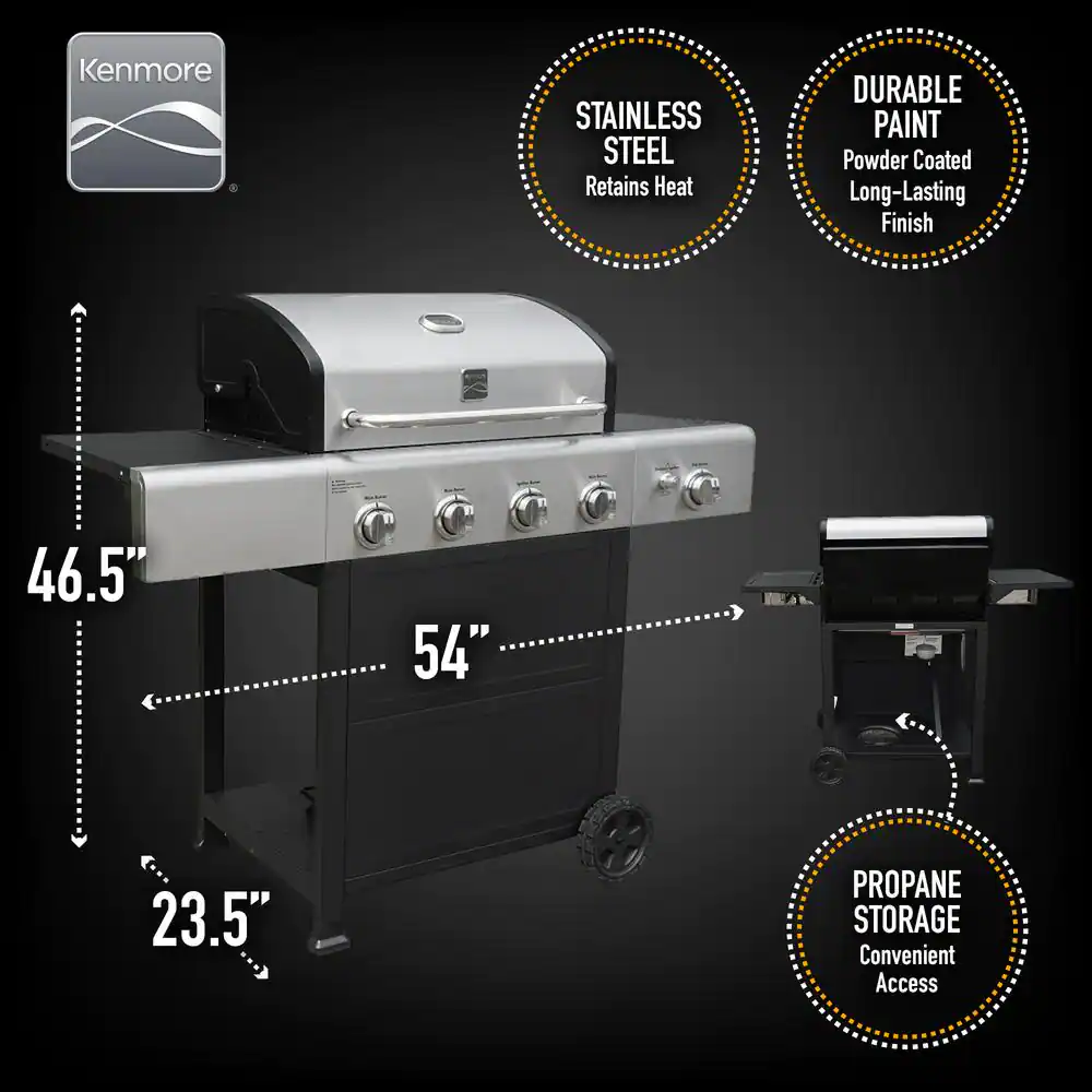 Kenmore Kenmore 4 Burner Open Cart Propane Gas BBQ Grill With Side Burner. Stainless Steel And Black