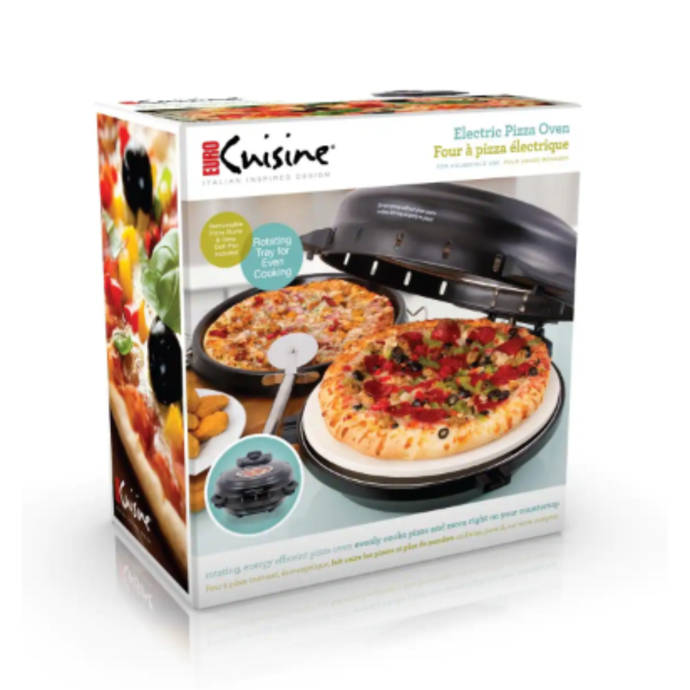 Euro Cuisine 12 in. Black Electric Oven Pizza Maker with Lid
