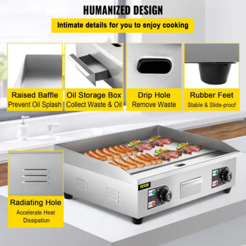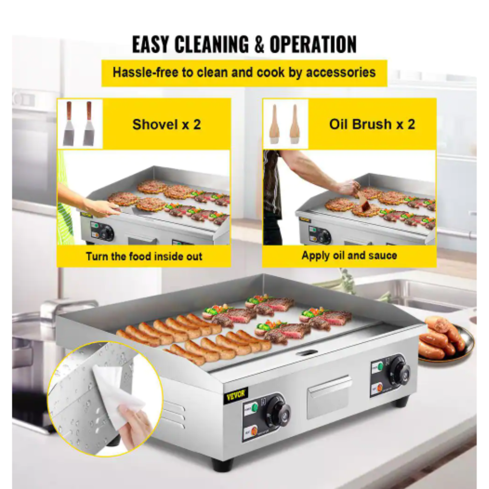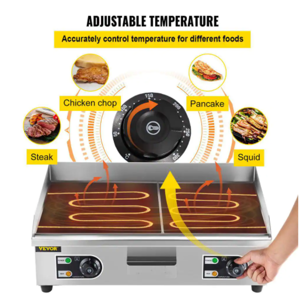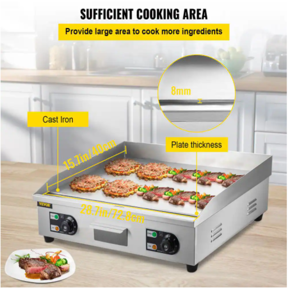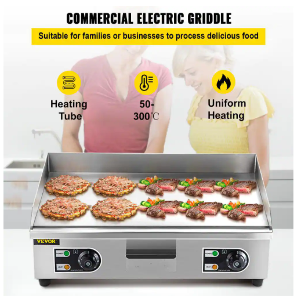 Vevor 28.7 in. Commercial Electric Griddle 3000-Watt Electric Countertop Non-Stick Restaurant Teppanyaki Flat Top Grill. Silver