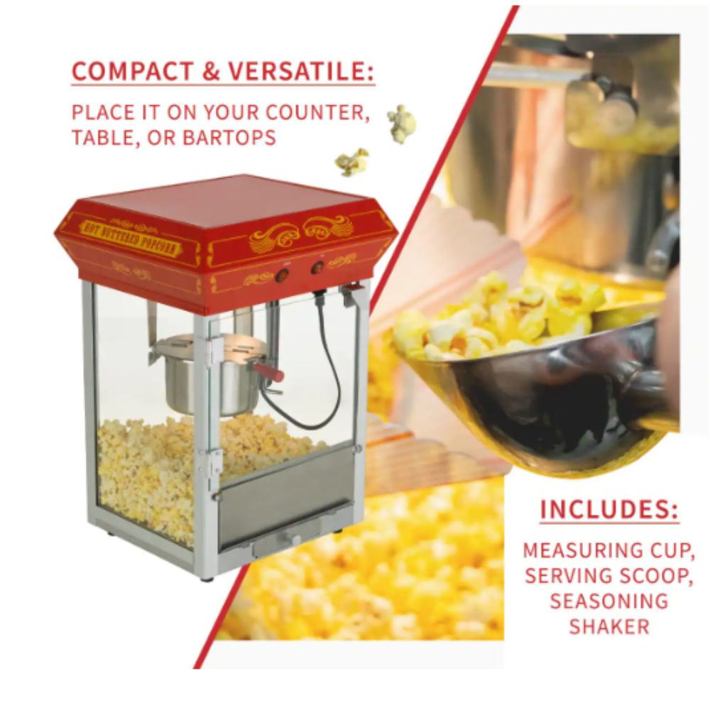 Funtime Carnival Style 4 oz. Red Countertop Popcorn Machine