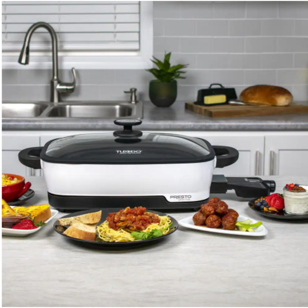 Presto 12 in. Tuxedo White Electric Skillet Multi-Cooker