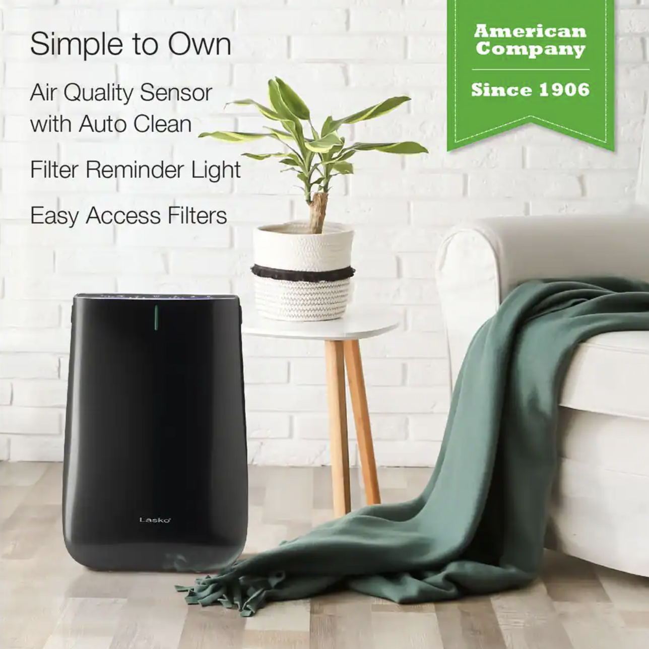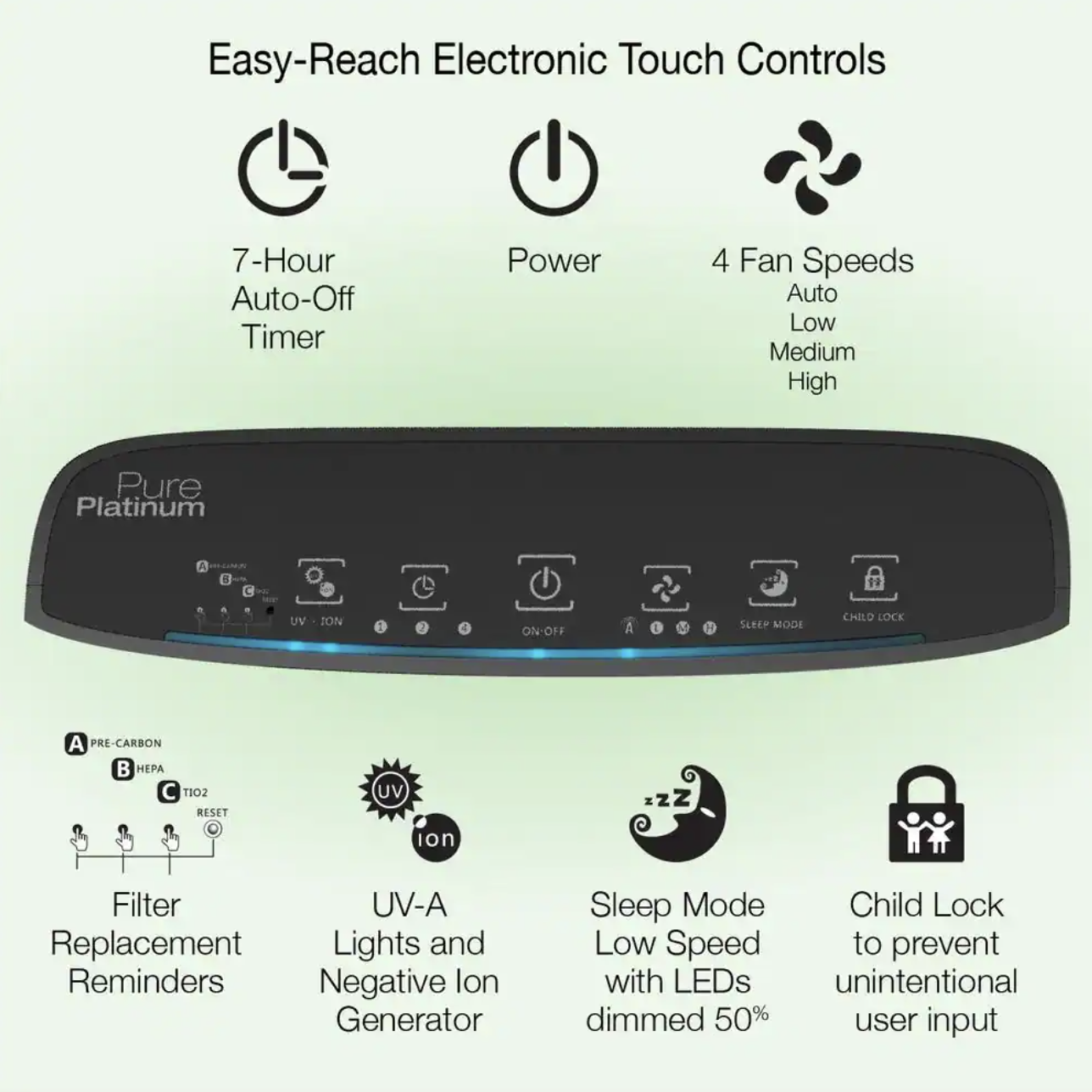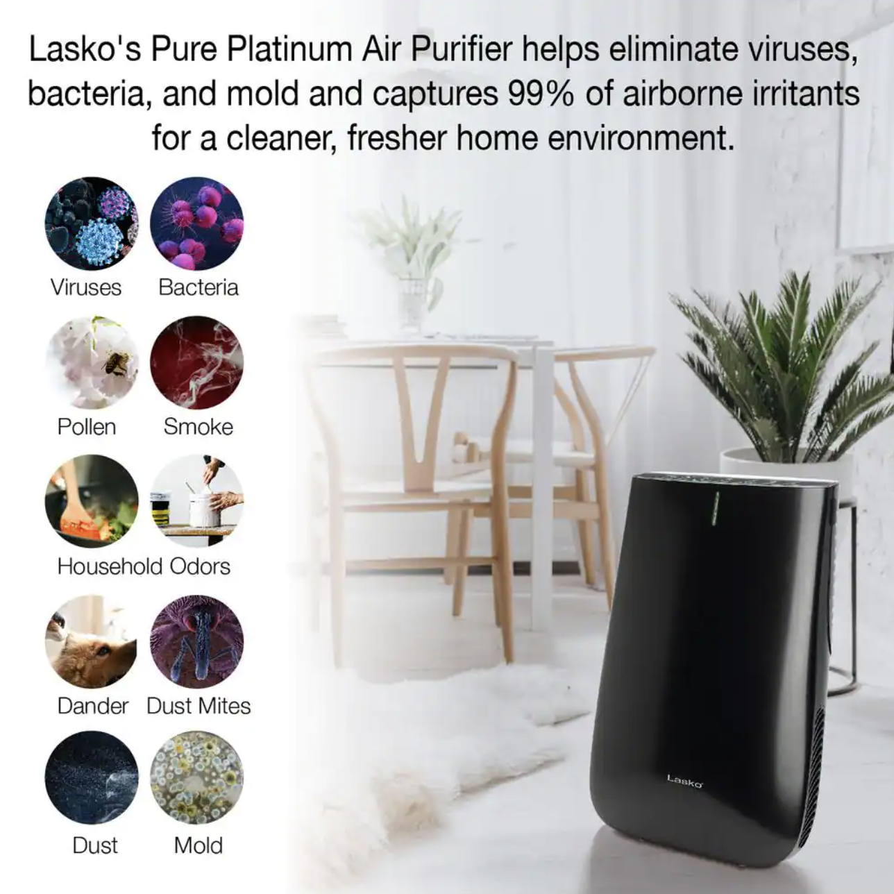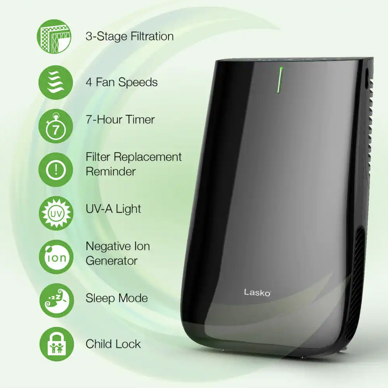 Lasko Pure Platinum Slim Profile Air Purifier with HEPA-Type Filtration and Auto Clean. Black