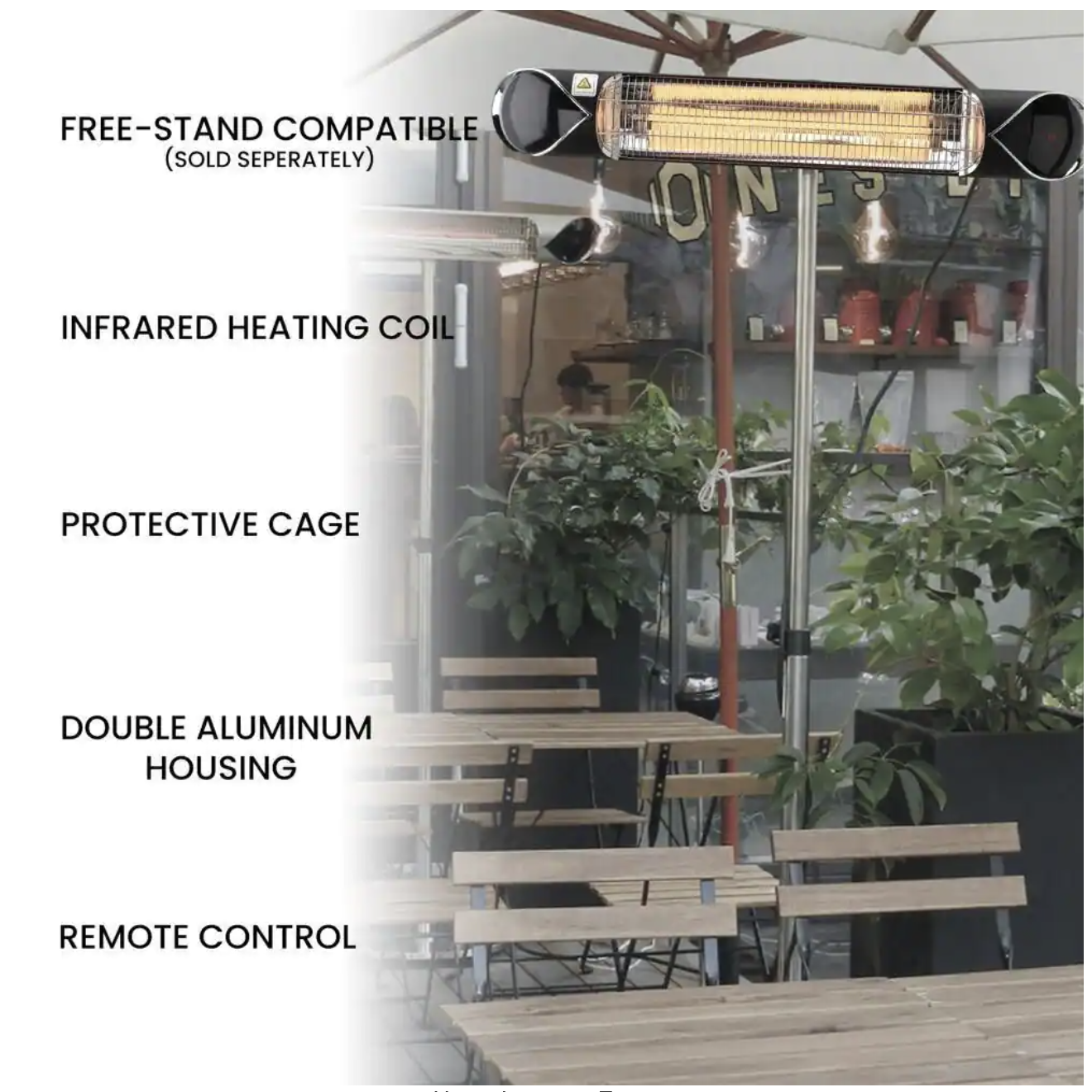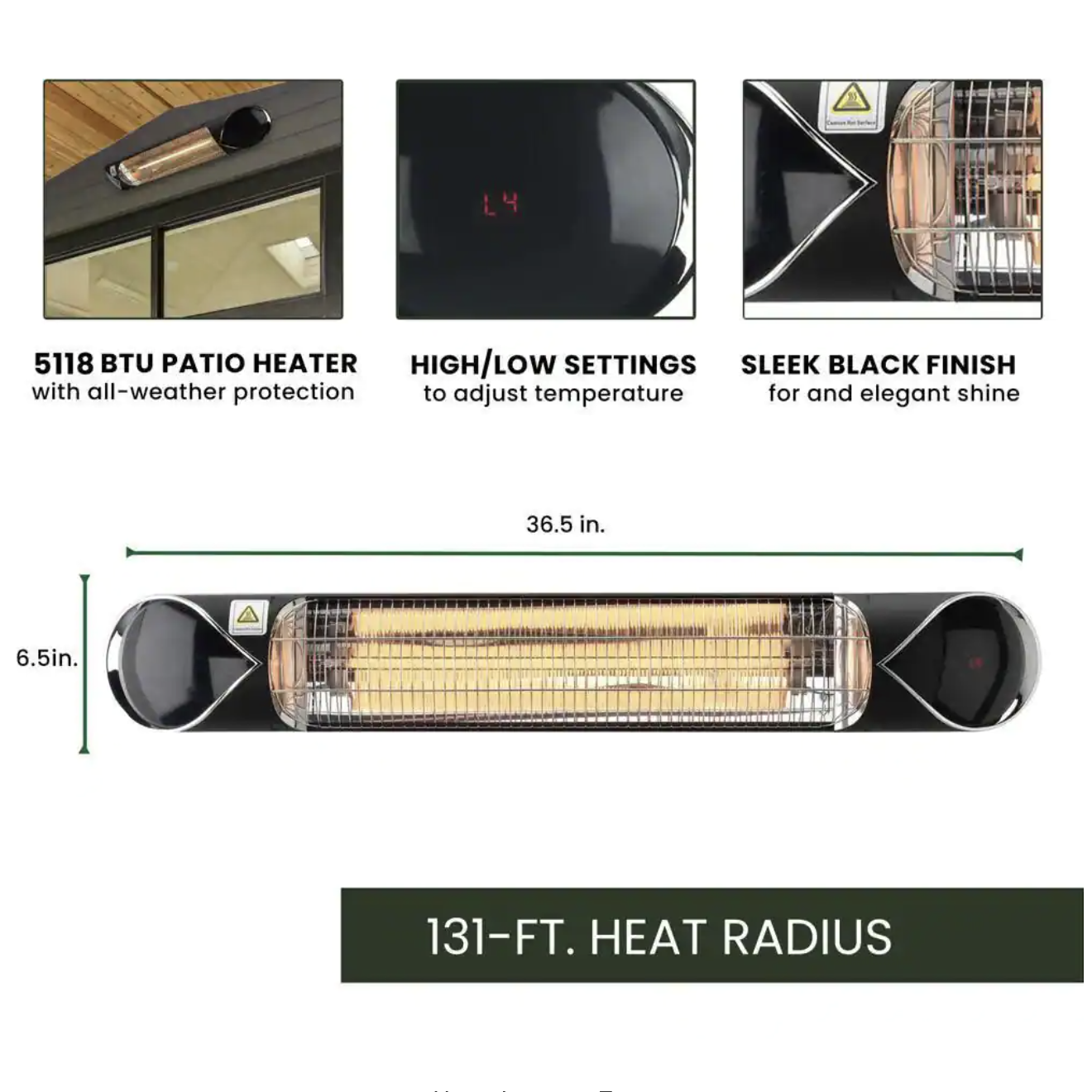 Hanover Electric Infrared Carbon Heat Lamp with Mounting Bracket and Remote Control. 131 Sq. Ft.. Black