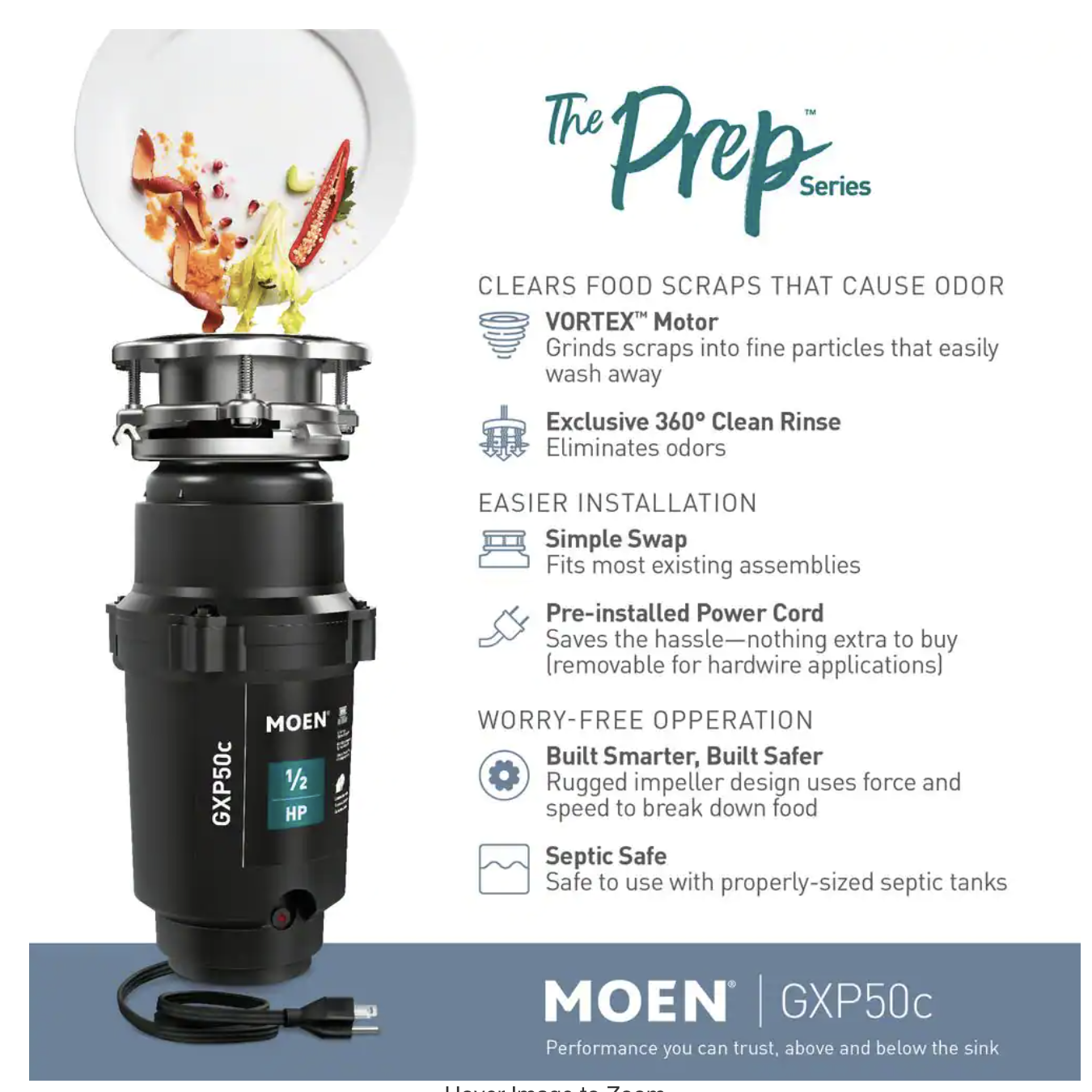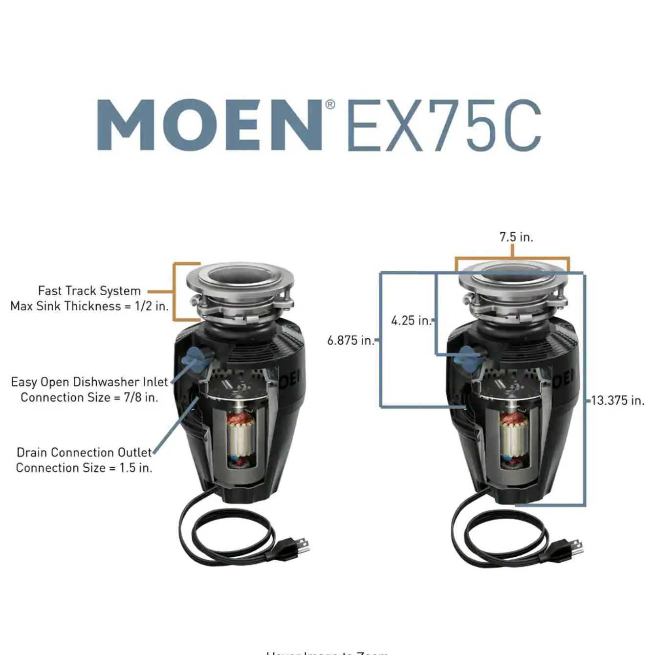 Moen Host Series 3/4 HP Continuous Feed Space Saving Garbage Disposal with Sound Reduction and Universal Mount
