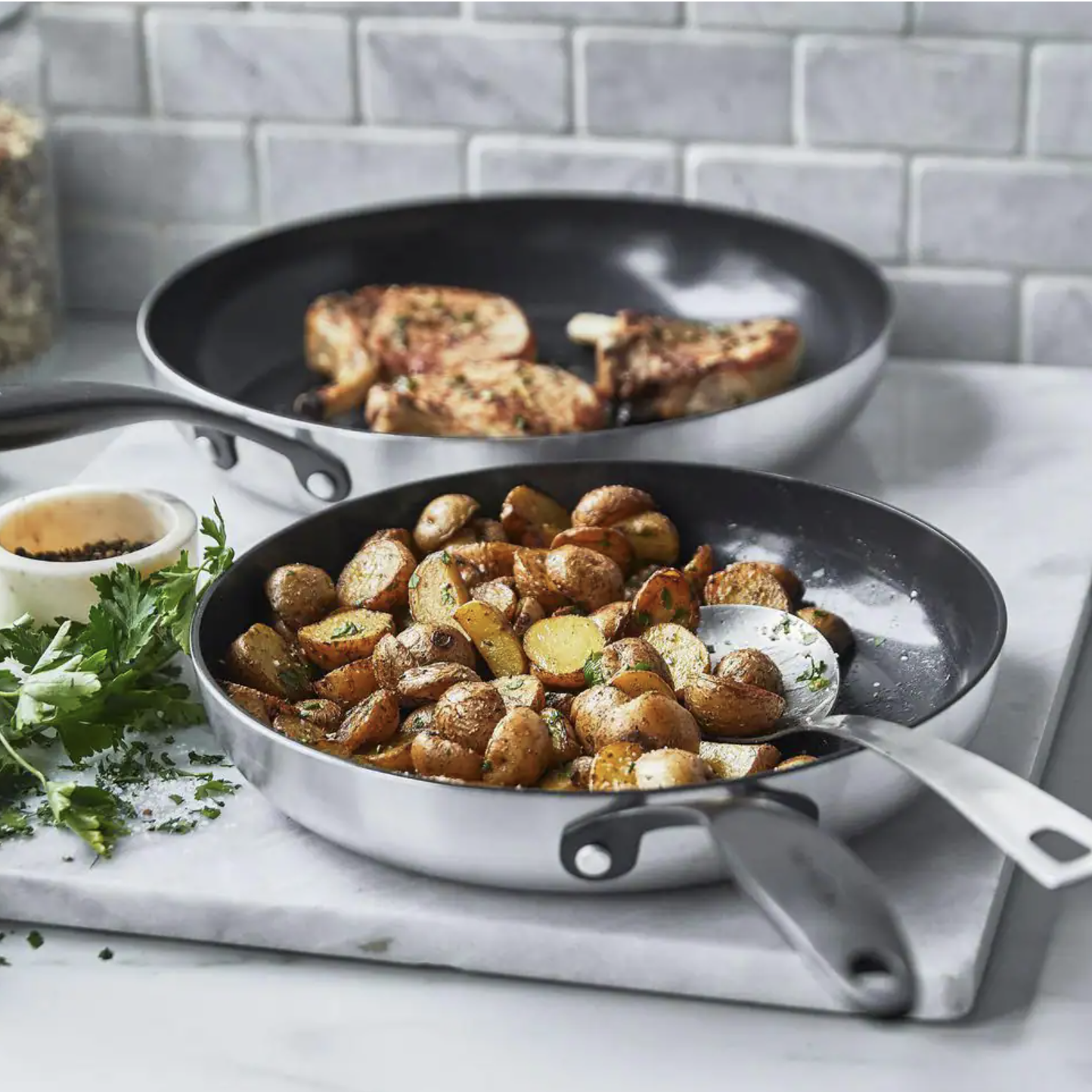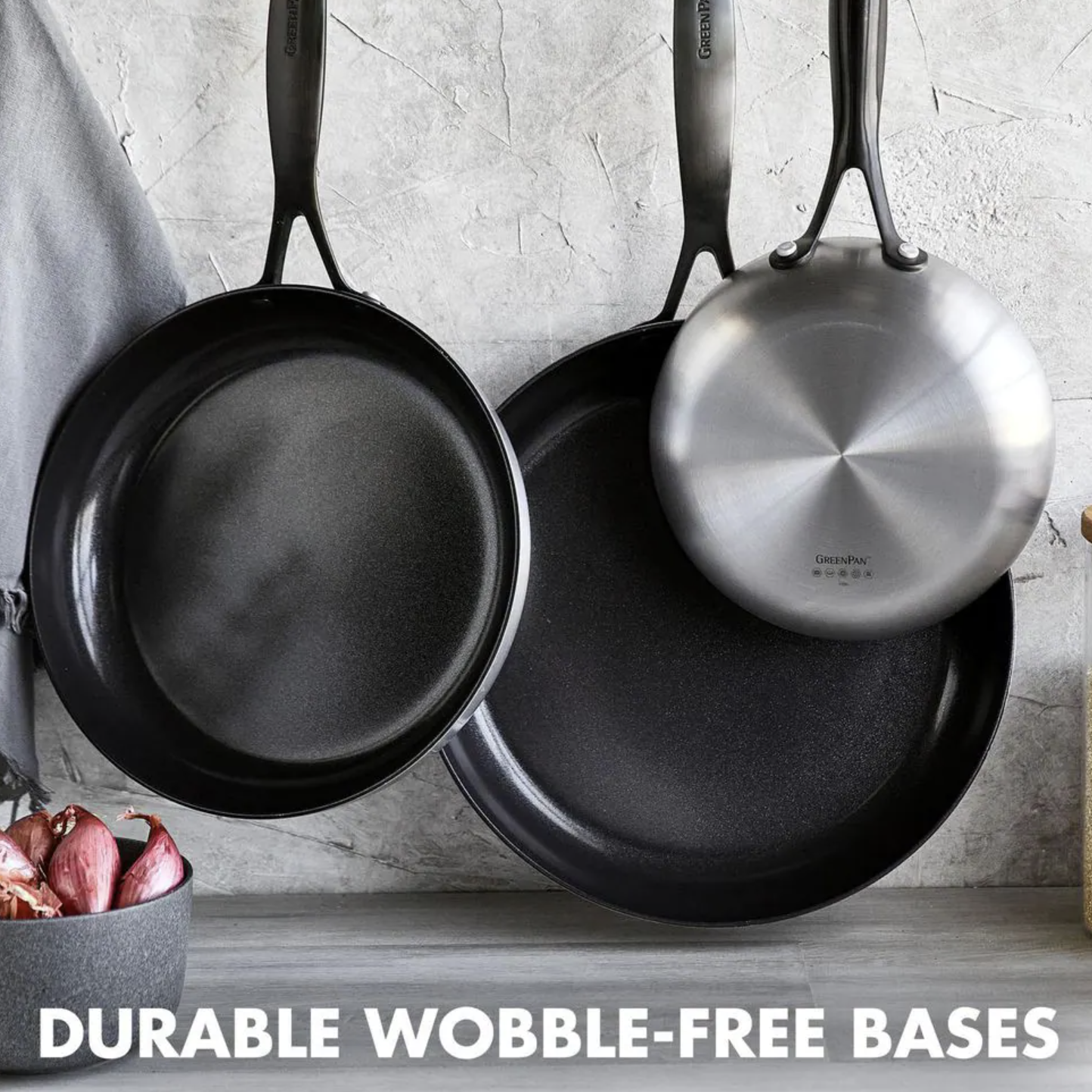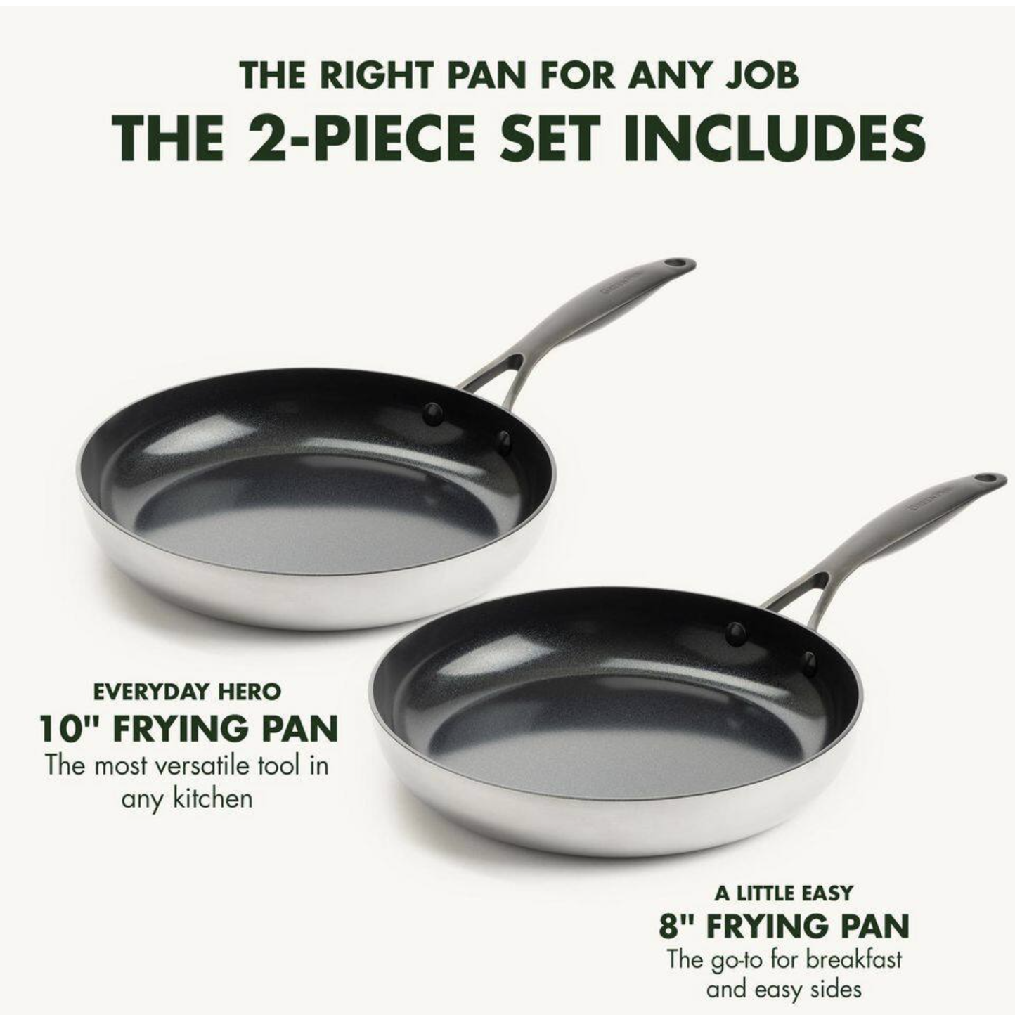 GreenPan Venice Pro Noir Tri-Ply Stainless Steel Healthy Ceramic Nonstick 3 Piece. 8 in. 10 in. and 12 in. Frying Pan Skillet Set