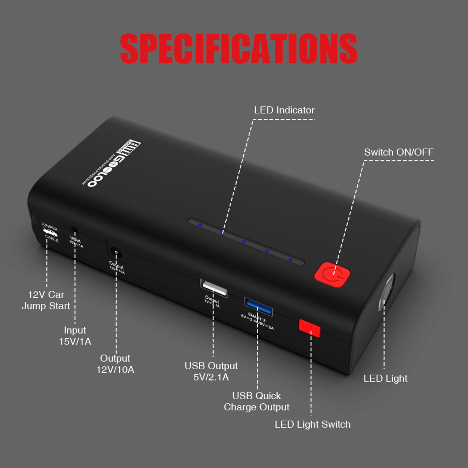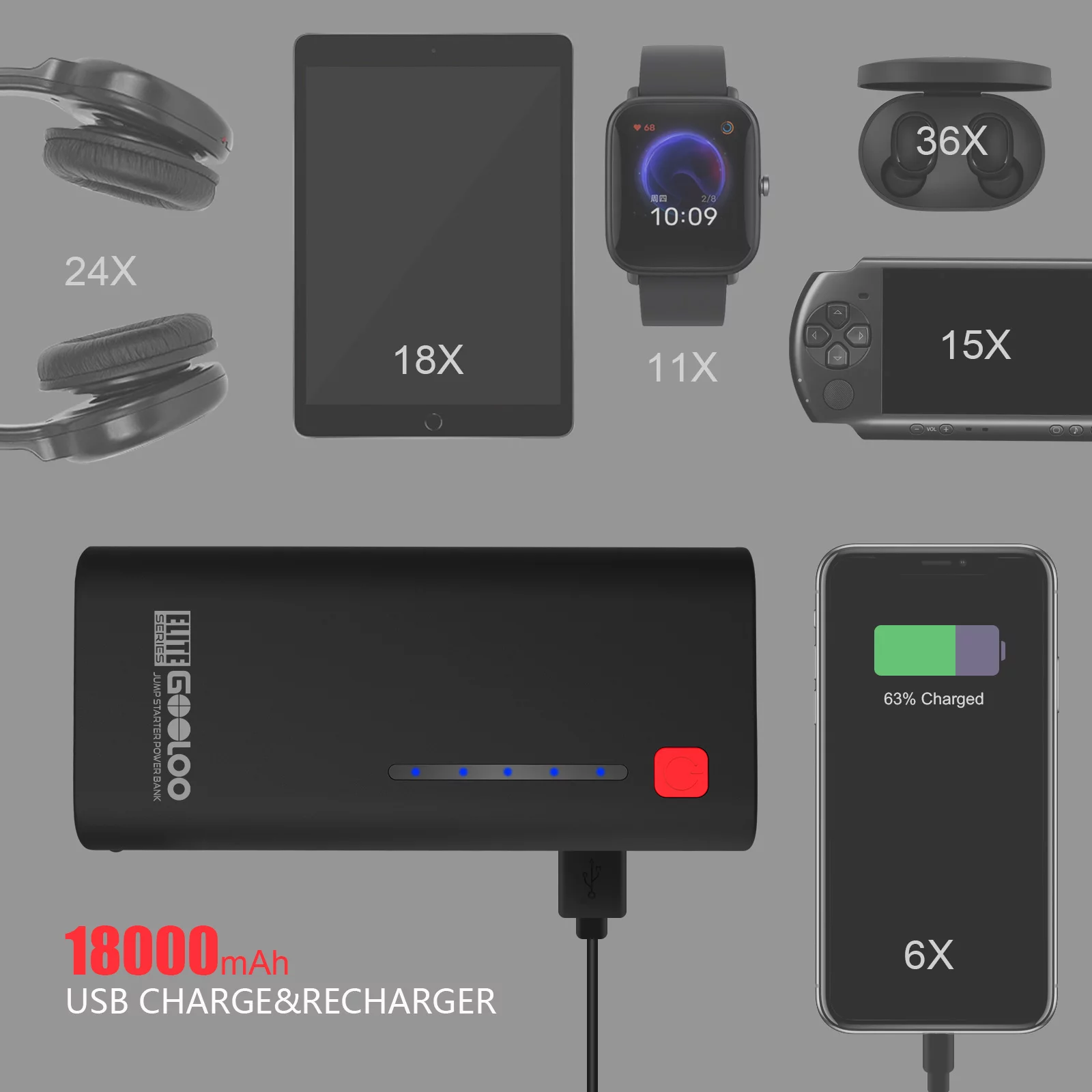 Gooloo 1200A Peak 18000mAh SuperSafe Car Jump Starter with USB Quick Charge for Up to 7.0L Gas or 5.5L Diesel Engine