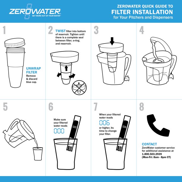 ZeroWater 4-Pack Replacement Water Filters for all ZeroWater Models ZR-006. White