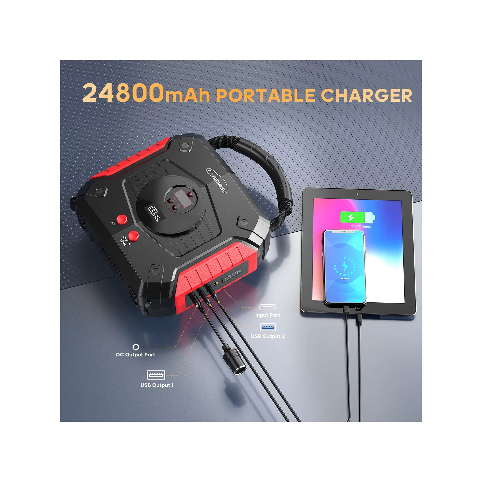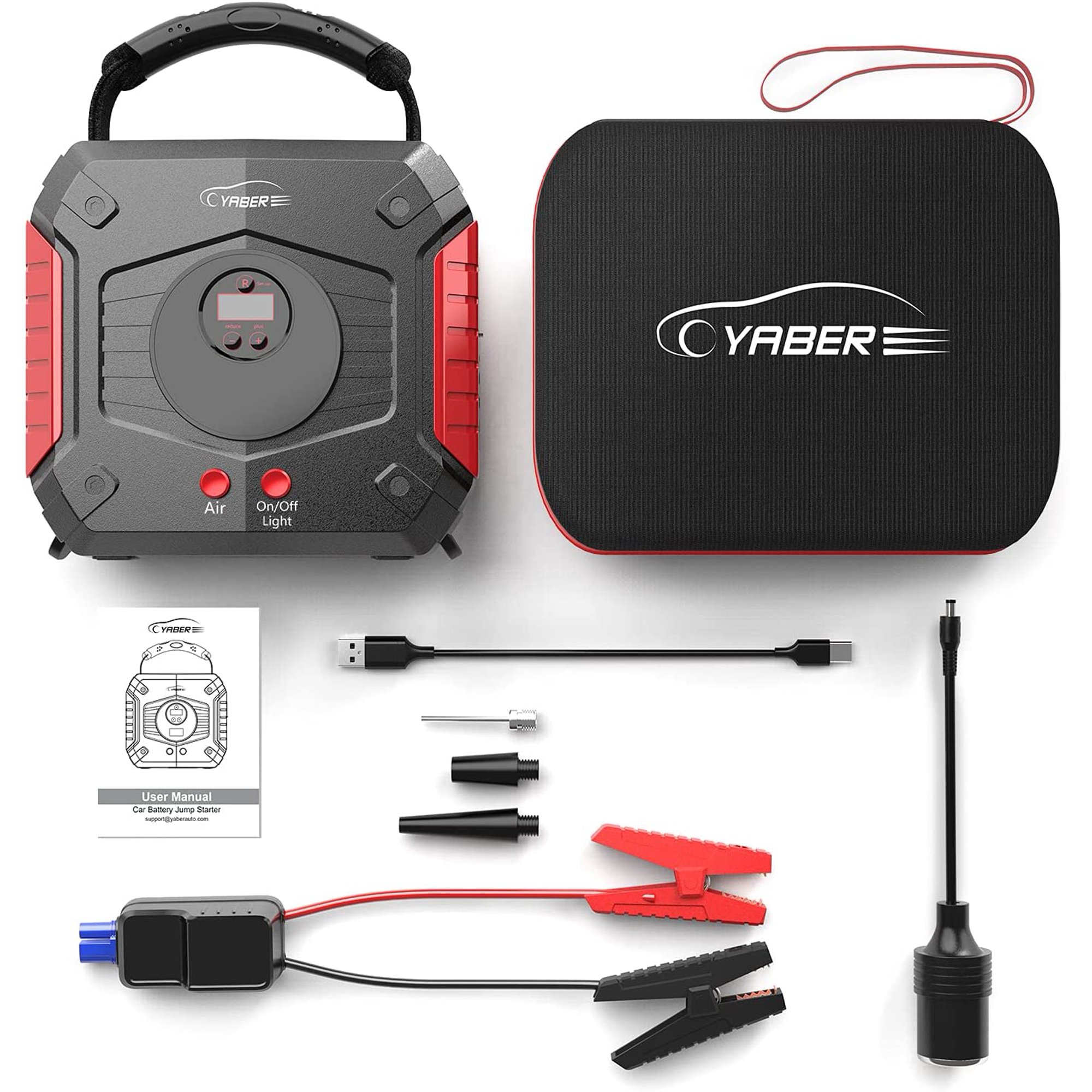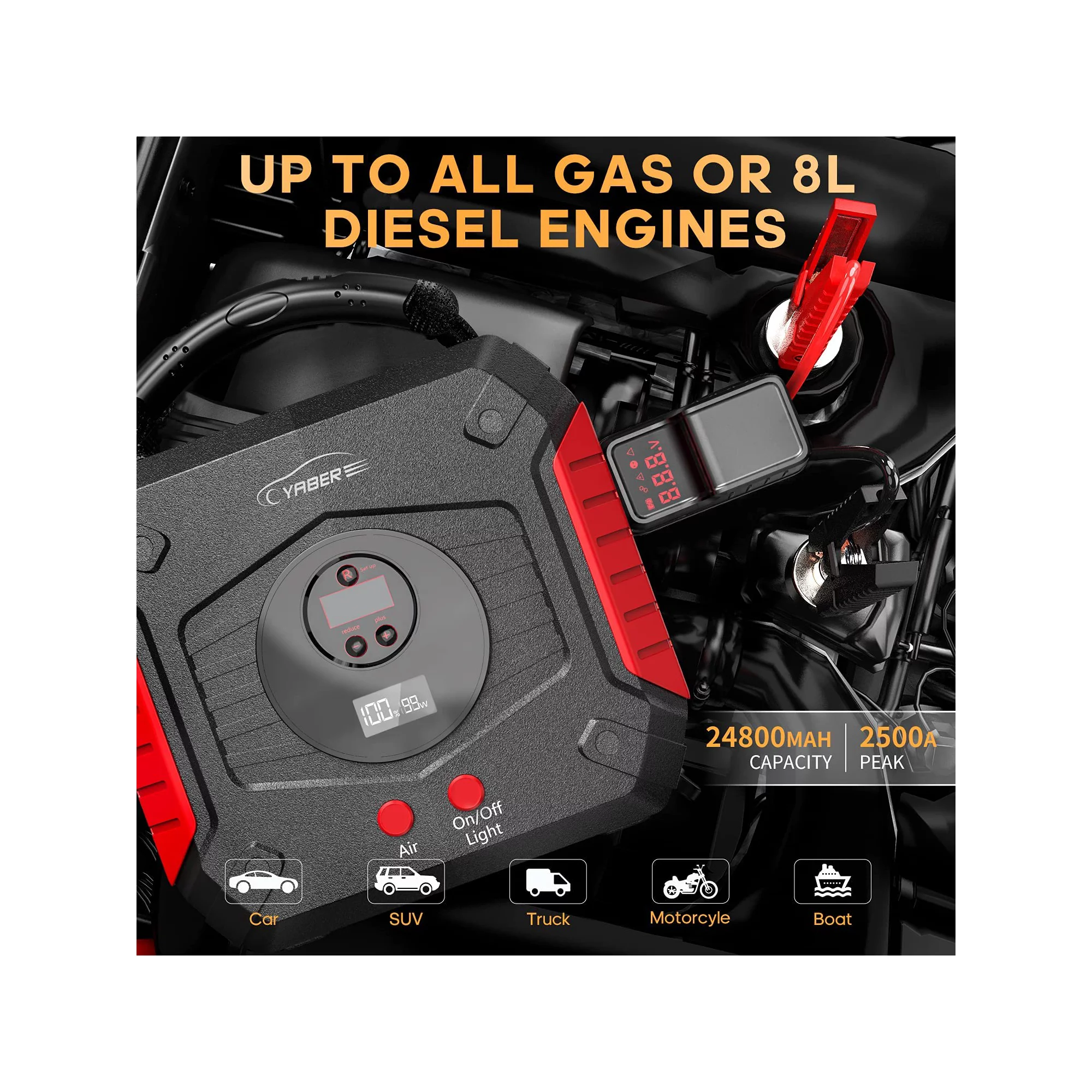 Yaber YA30 Jump Starter with Air Compressor 150 PSI 2500A Peak 24800 mAh Battery 12V Car Pack Super Safe