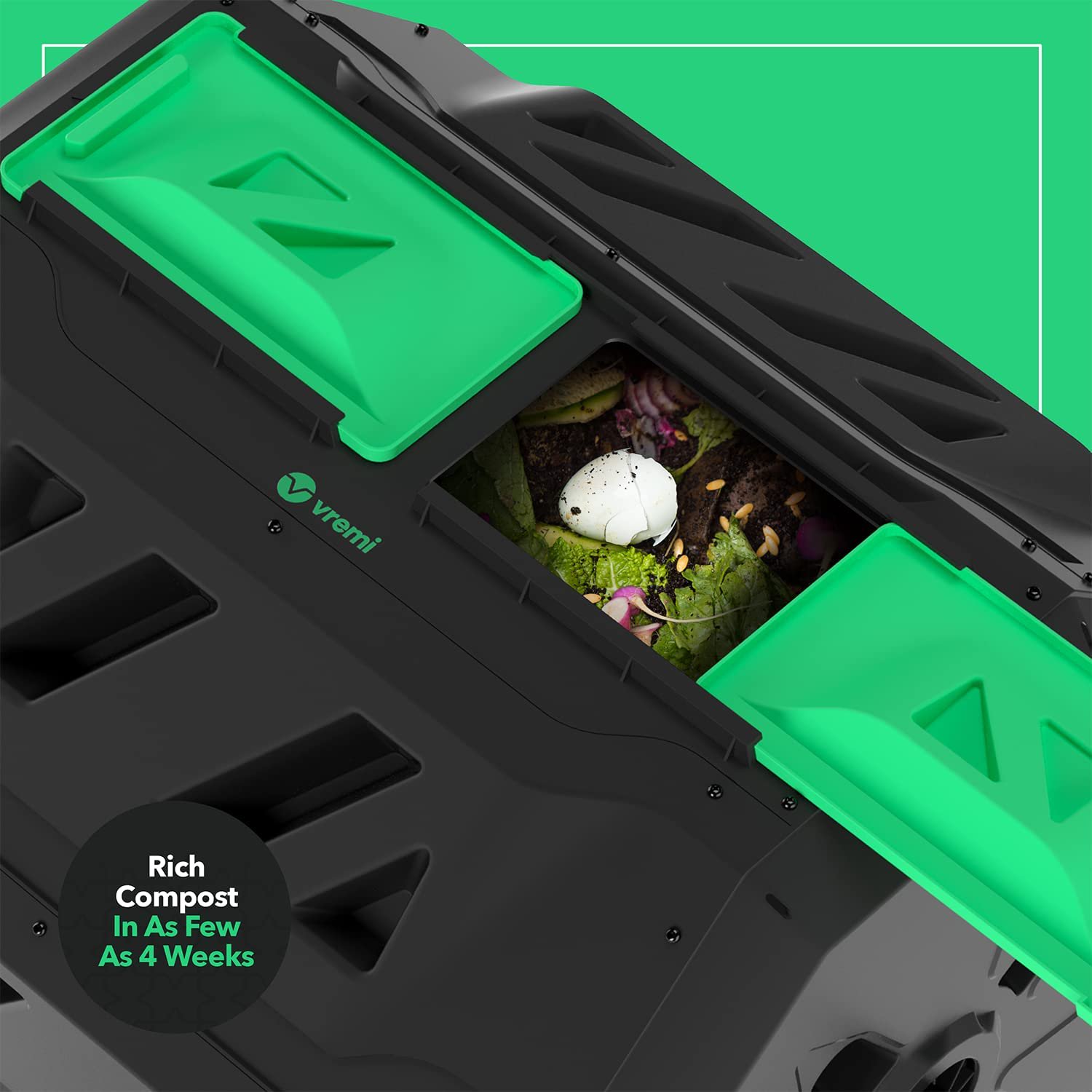 Vremi Tumbling Outdoor Compost Bin ?Dual Chamber 360° UV Proof and Rust Proof 42 gal