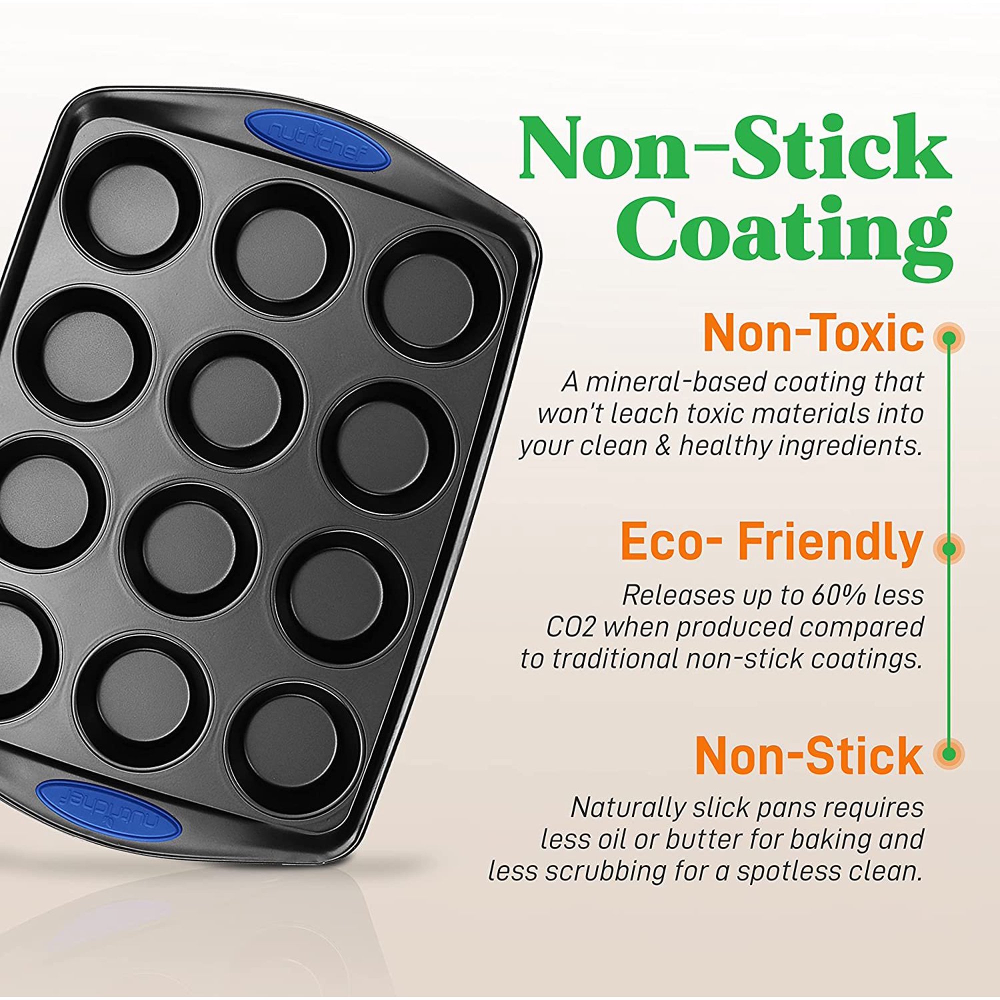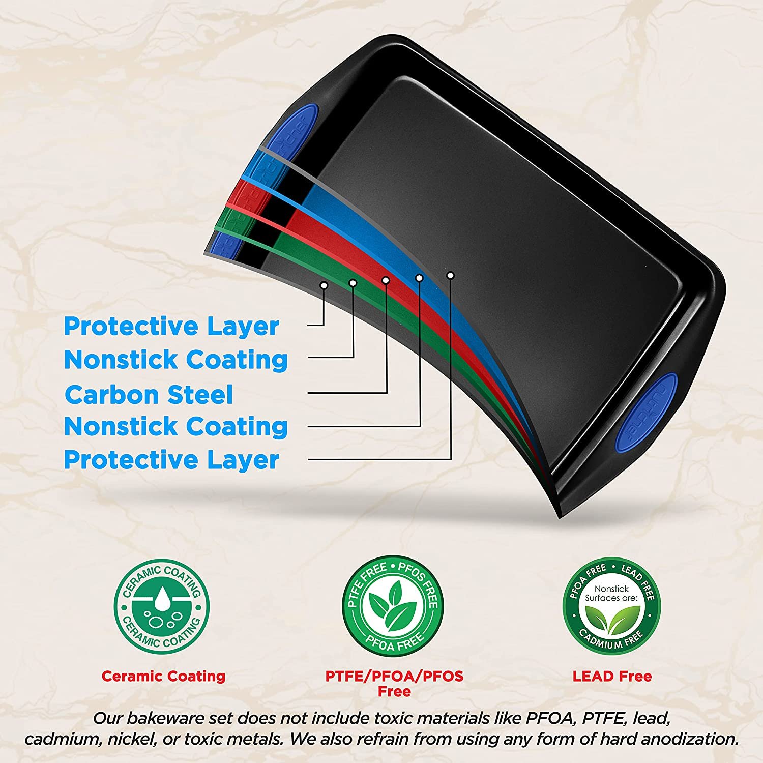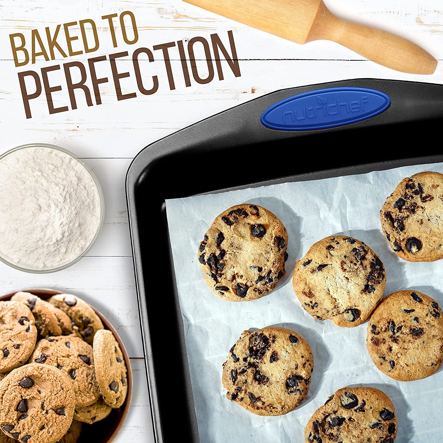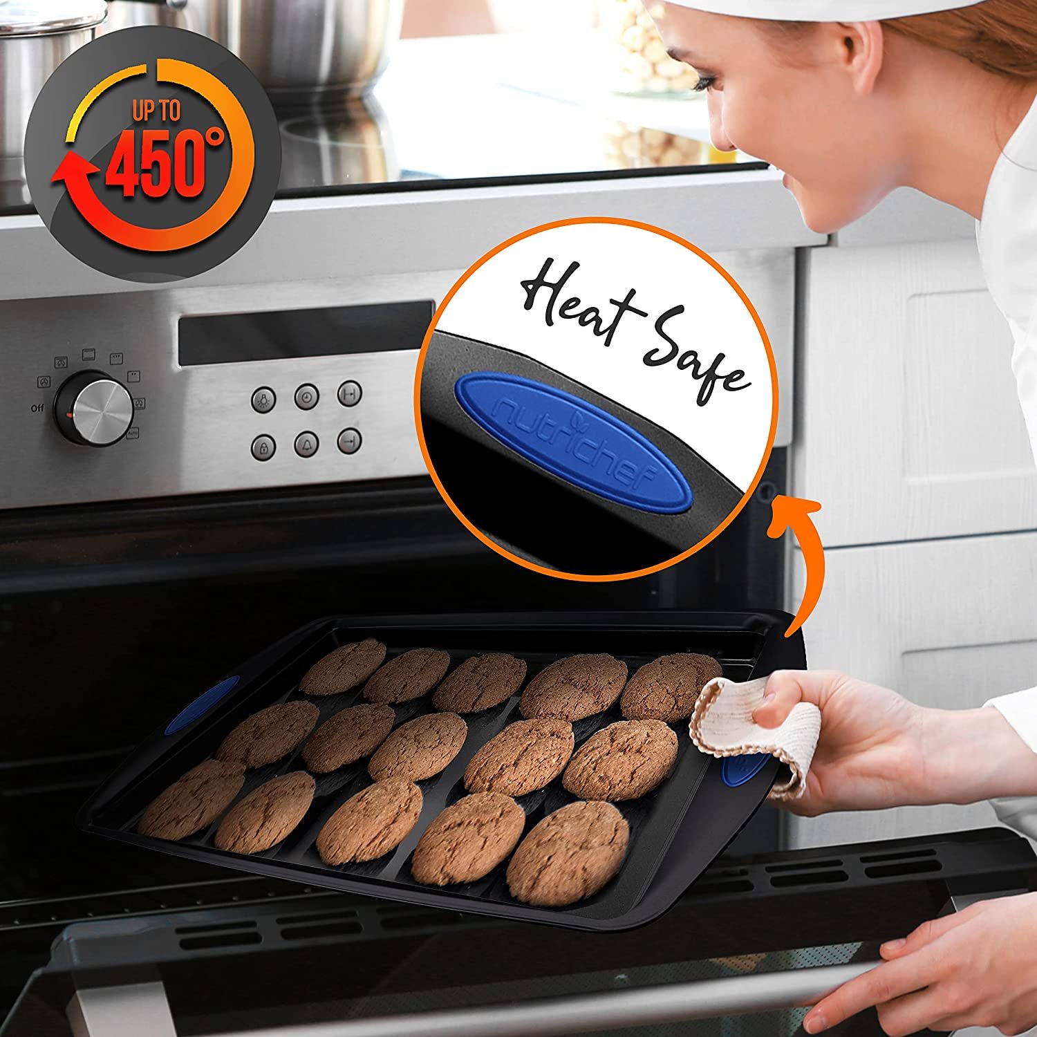 NutriChef 15-Piece Baking Pan Set. Nonstick Gray Coating Carbon Steel with Blue Silicone Handles Bakeware
