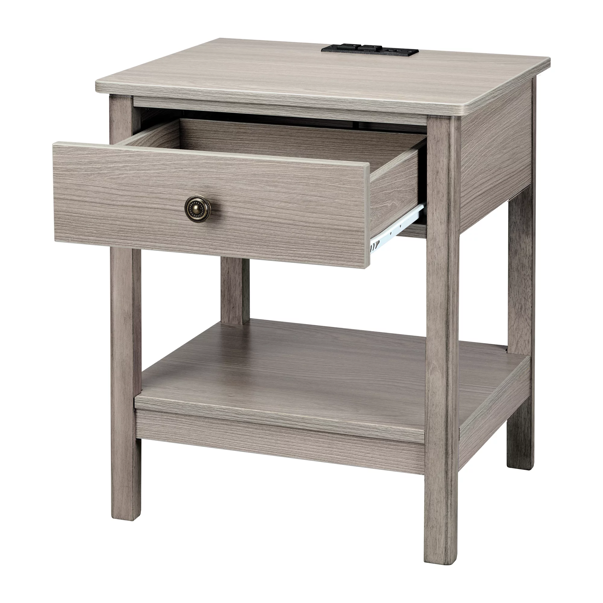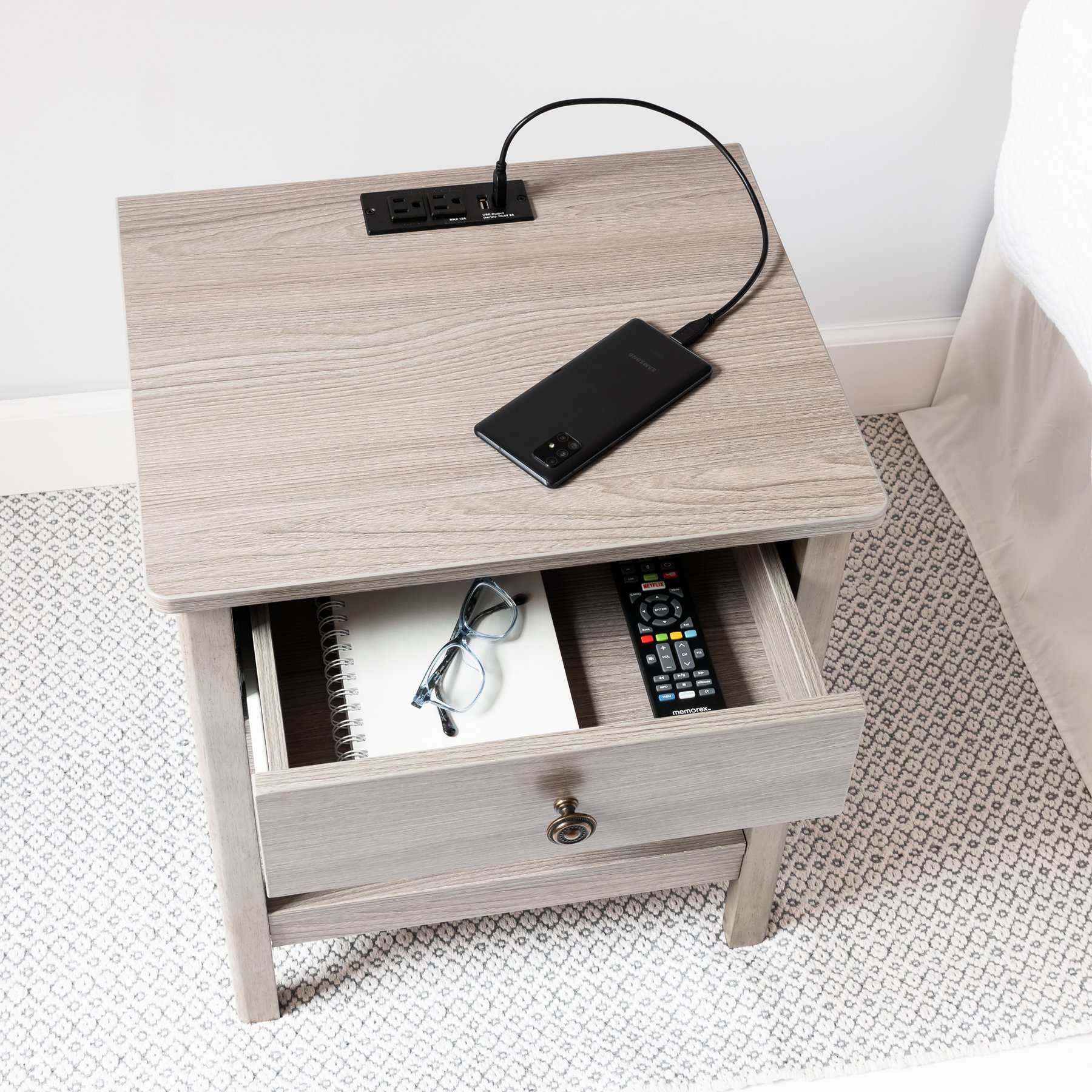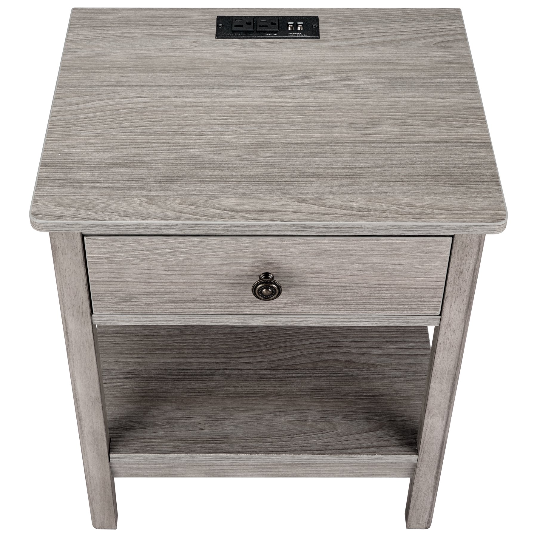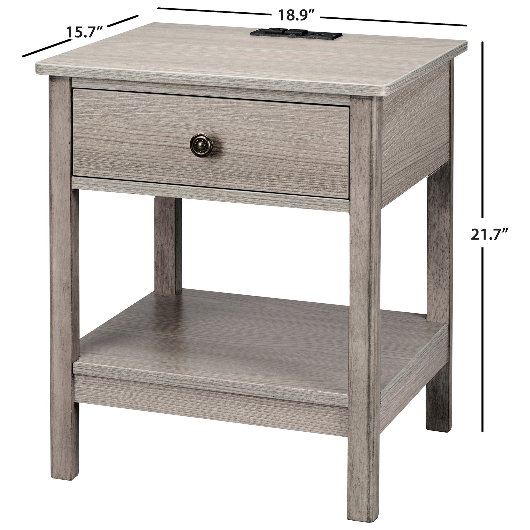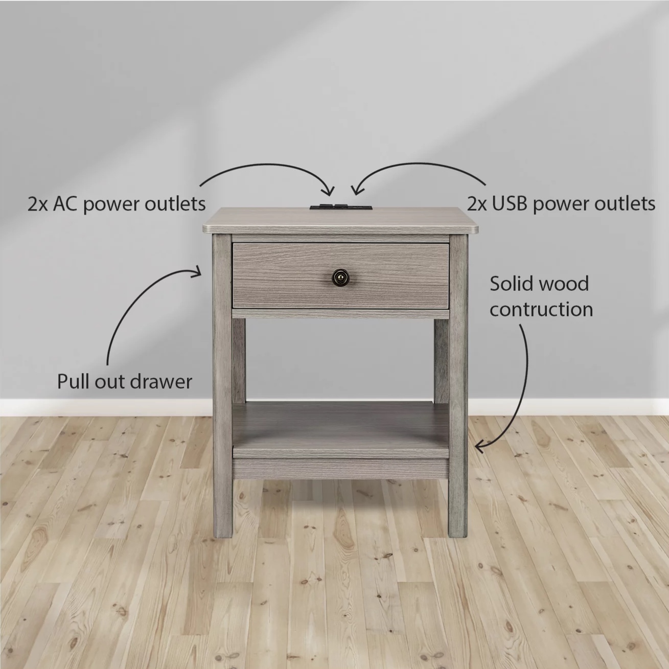 DecorTech Traditional Rectangular End Table with AC Power and USB Charging Ports. Gray