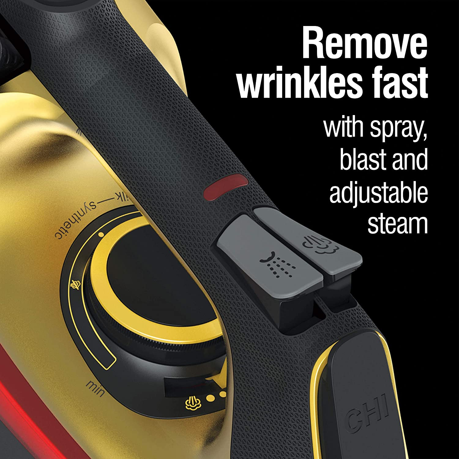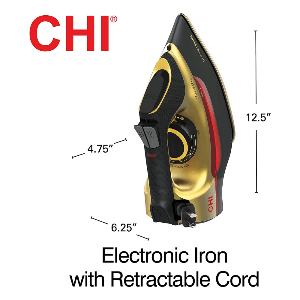 CHI 1700 Watts Retractable Cord Steam Iron with Titanium Infused Ceramic Soleplate. Gold (13116)