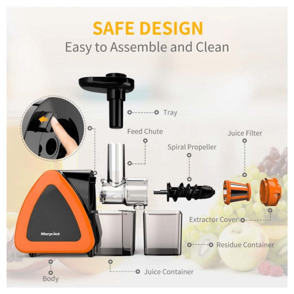 Morpilot Slow Masticating Juicer. Juicer Machine. Cold Press Juicer Machine. Orange