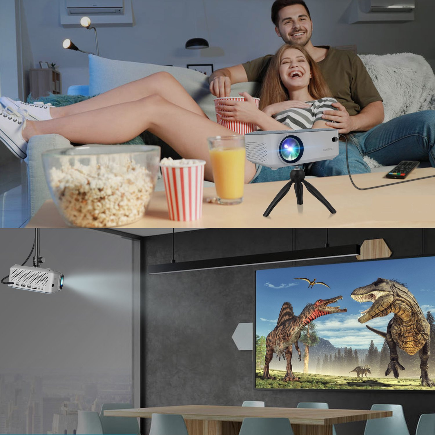 Fangor 206A 1080P Portable Mini Projector With Tripod & Carry Bag. Support Bluetooth. 200″ Projection Size
