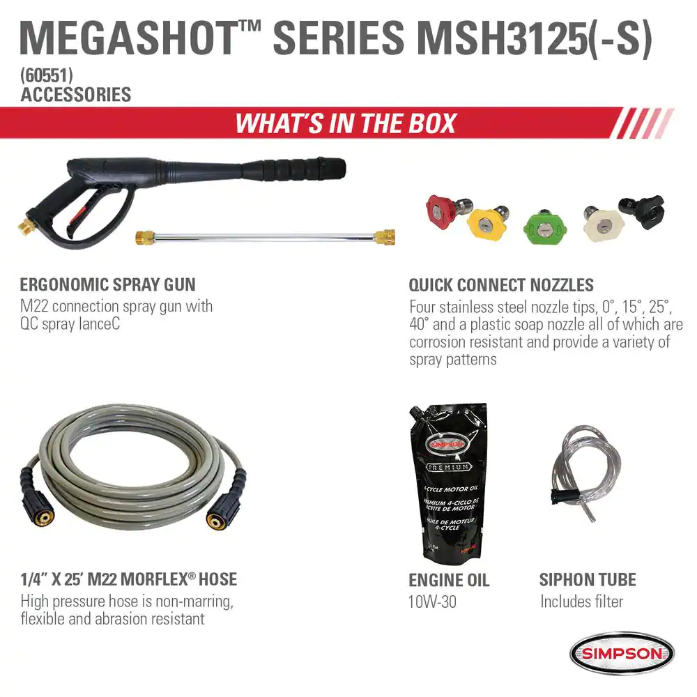 Simpson MegaShot 3200 PSI 2.5 GPM Gas Cold Water Pressure Washer With HONDA GC190 Engine (49-State)
