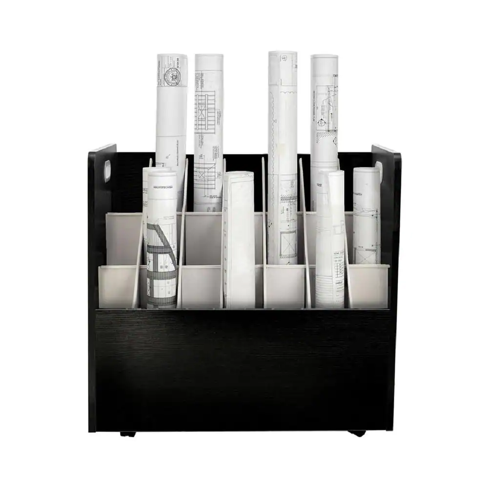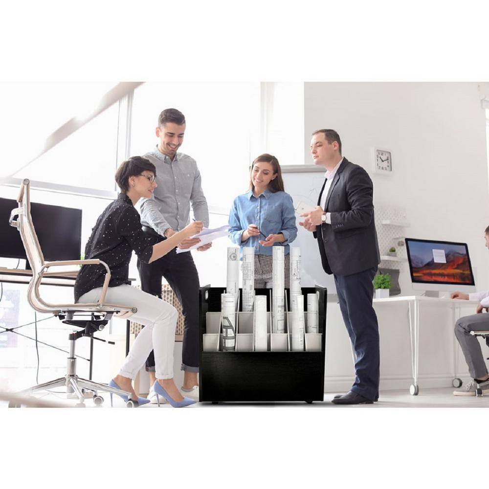 AdirOffice 21-Slot Black Mobile Rolling Wood Blueprint Roll File Large Document Organizer (2-Pack)