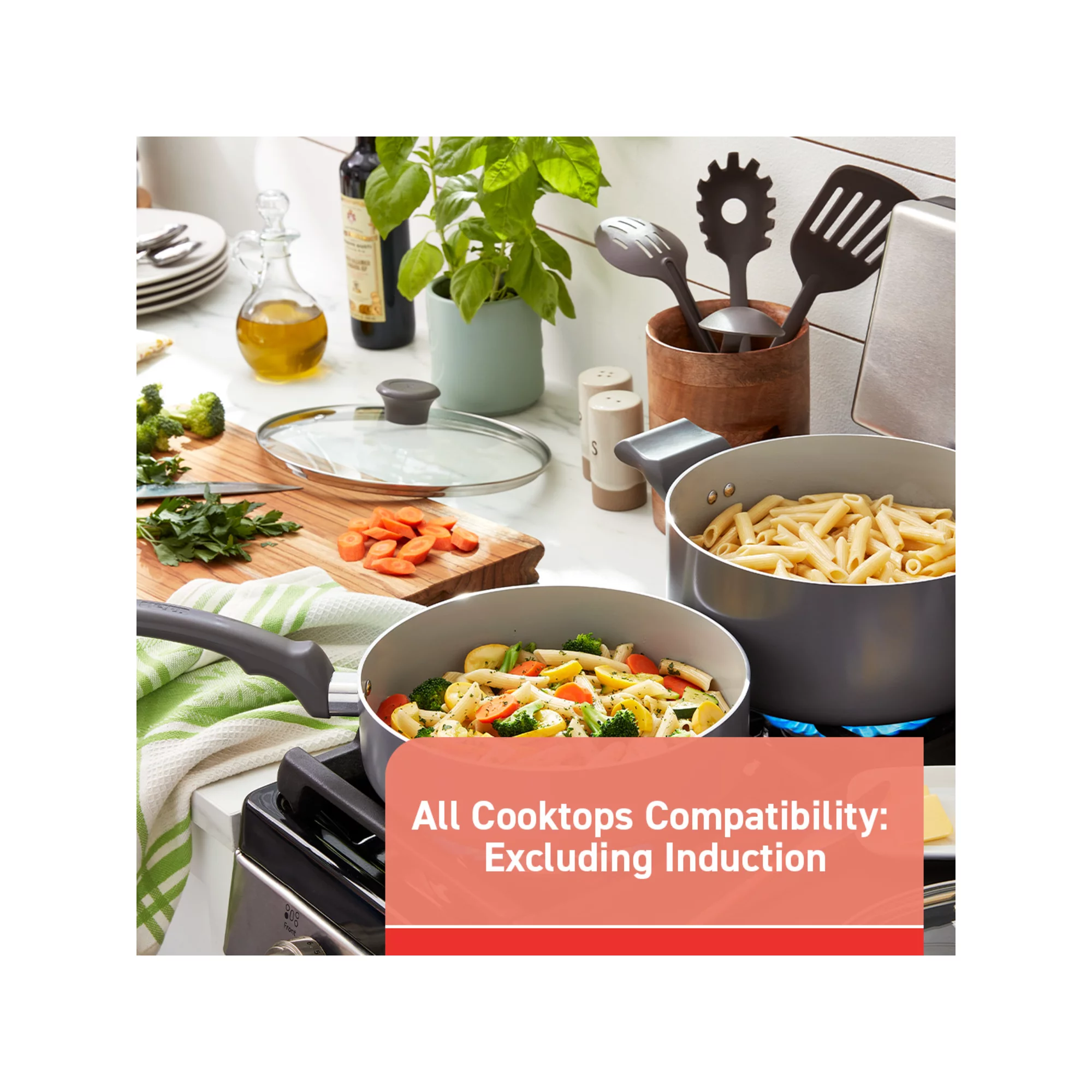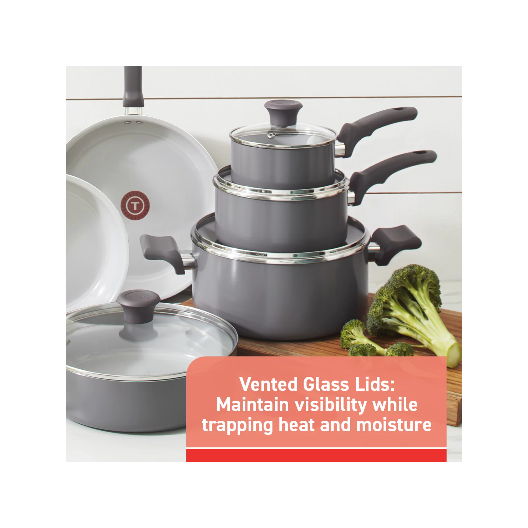 T-fal Fresh Ceramic Nonstick Cookware Set. Recycled Aluminum. 14 piece. Dishwasher Safe