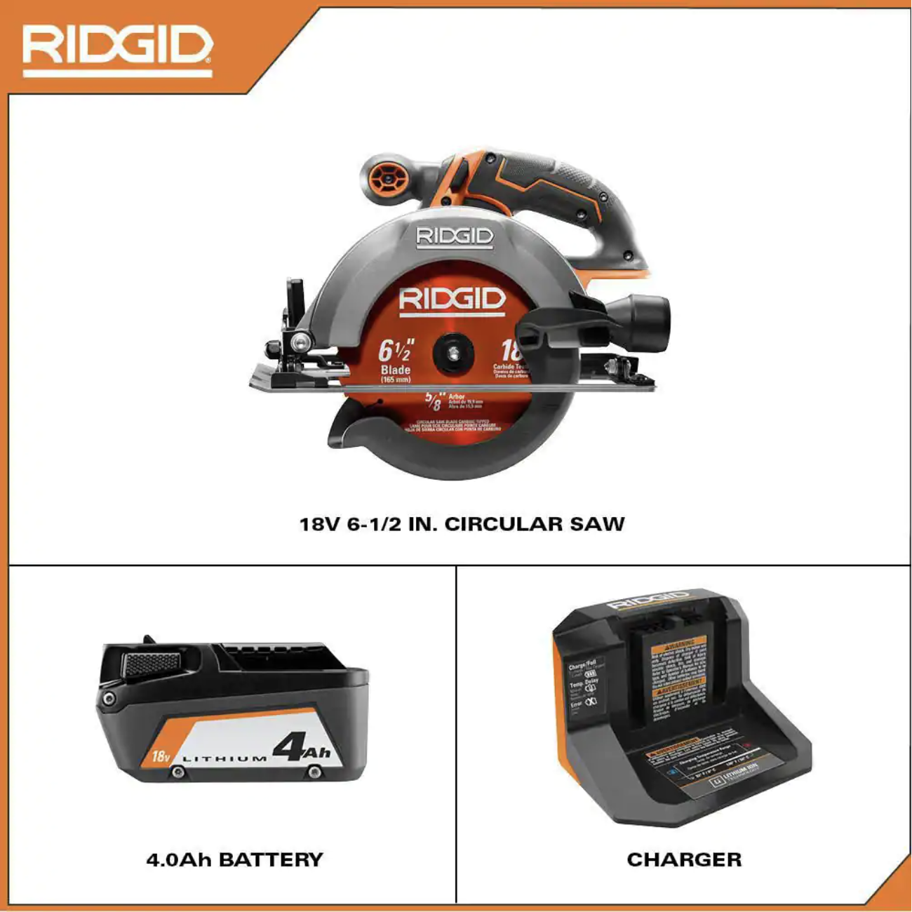 Ridgid 18V Cordless 6-1/2 in. Circular Saw Kit with (1) 4.0 Ah Battery and Charger