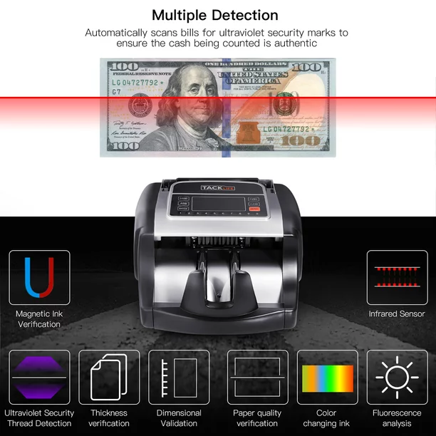 Tacklife Money Counter with UV/MG/IR Detection. Counterfeit Bill Detection. Batch Mode -Black