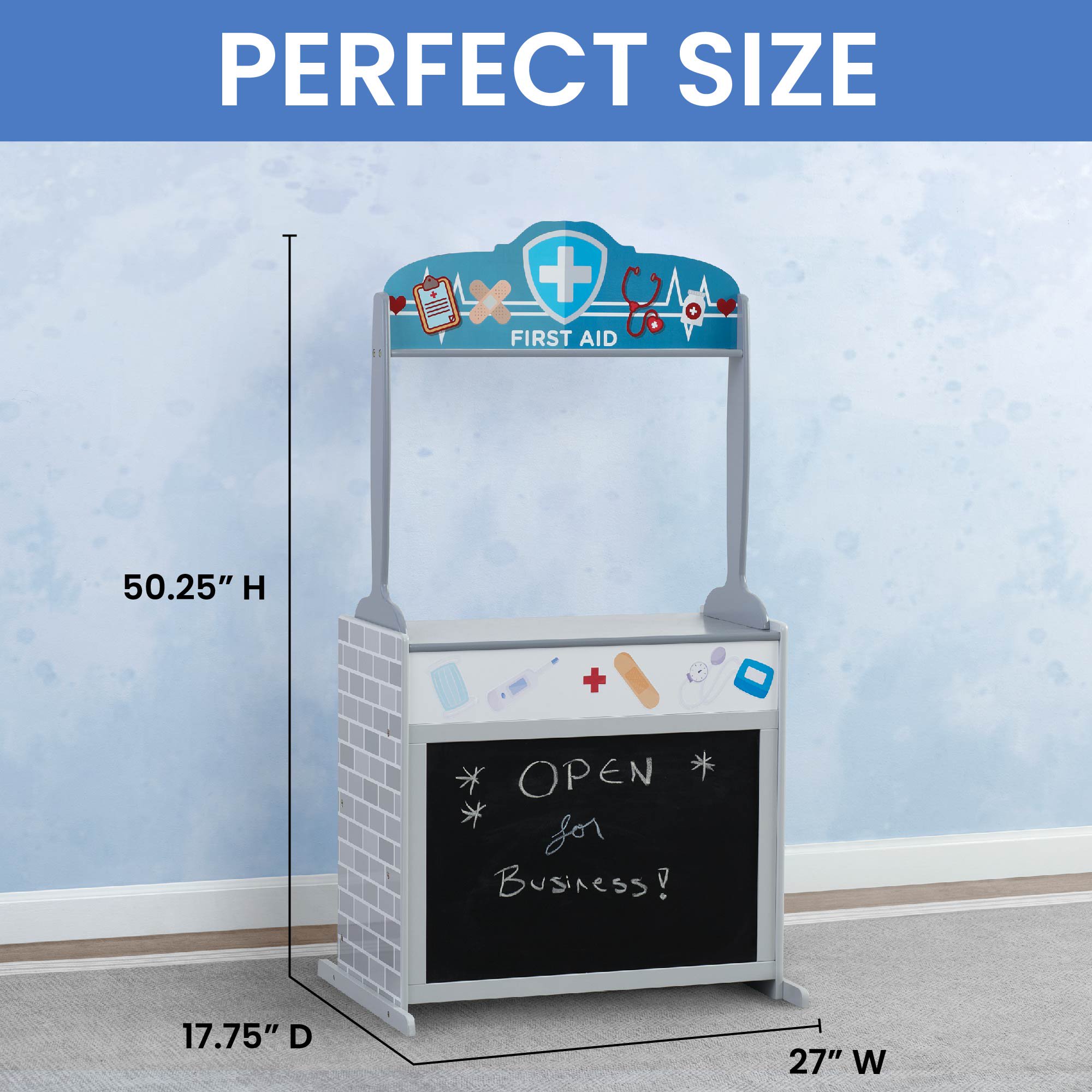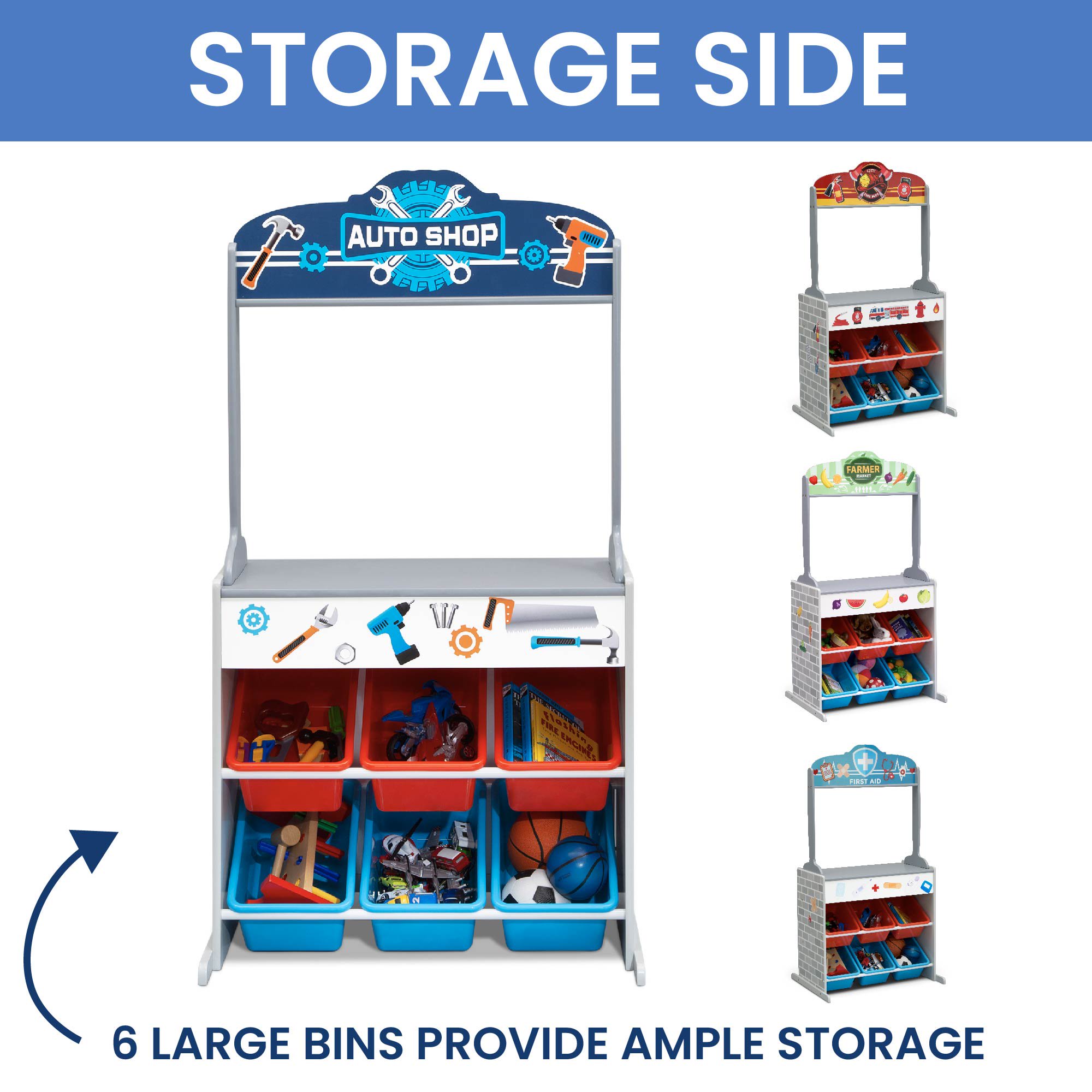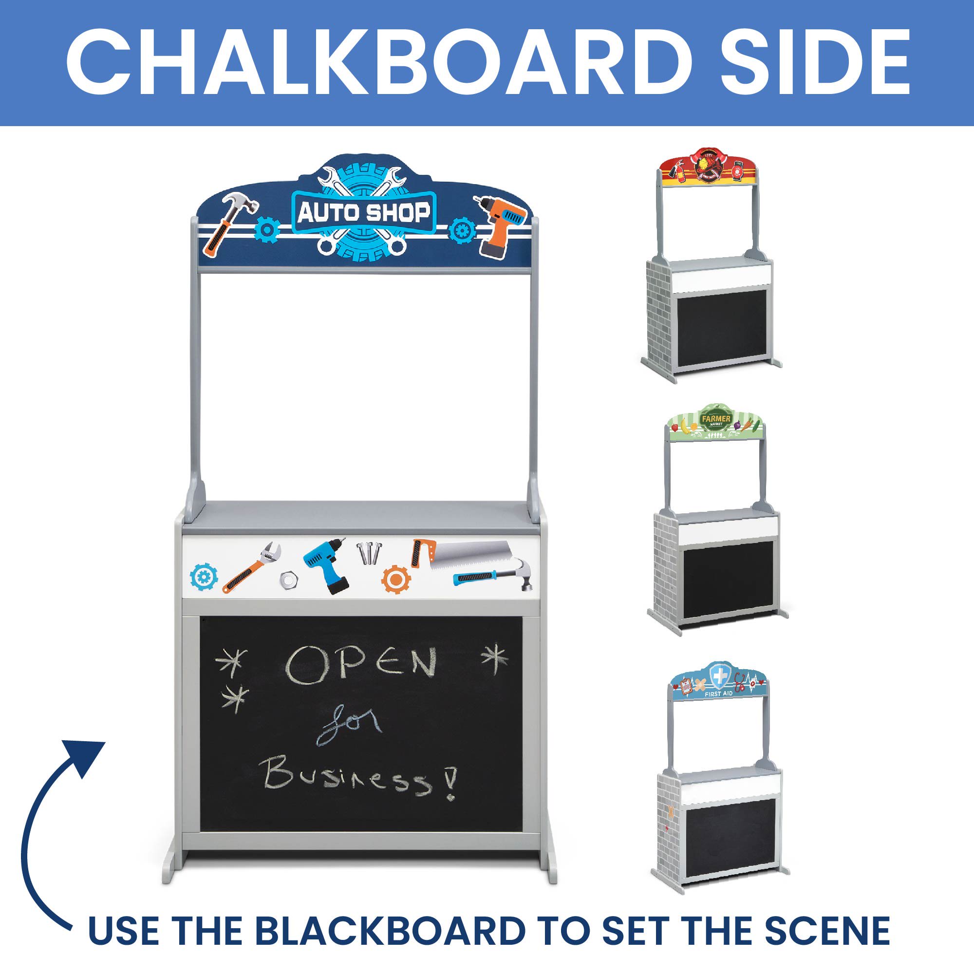 Delta Children Reversible 4-in-1 Pretend Play Center with Chalkboard & Storage. Greenguard Gold Certified. Grey