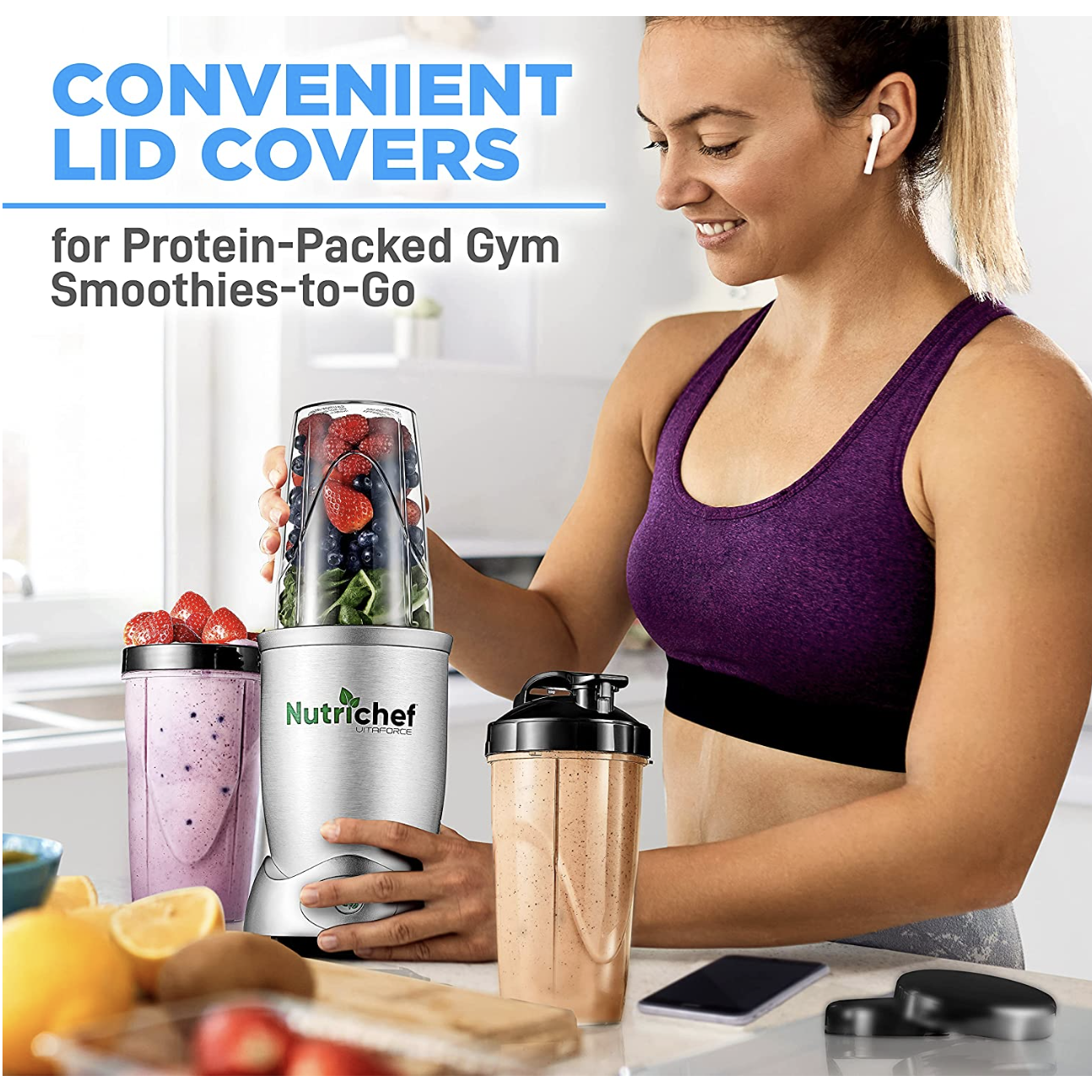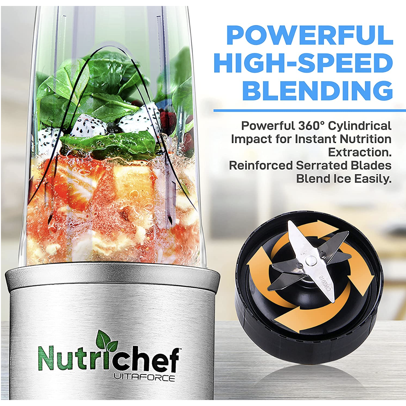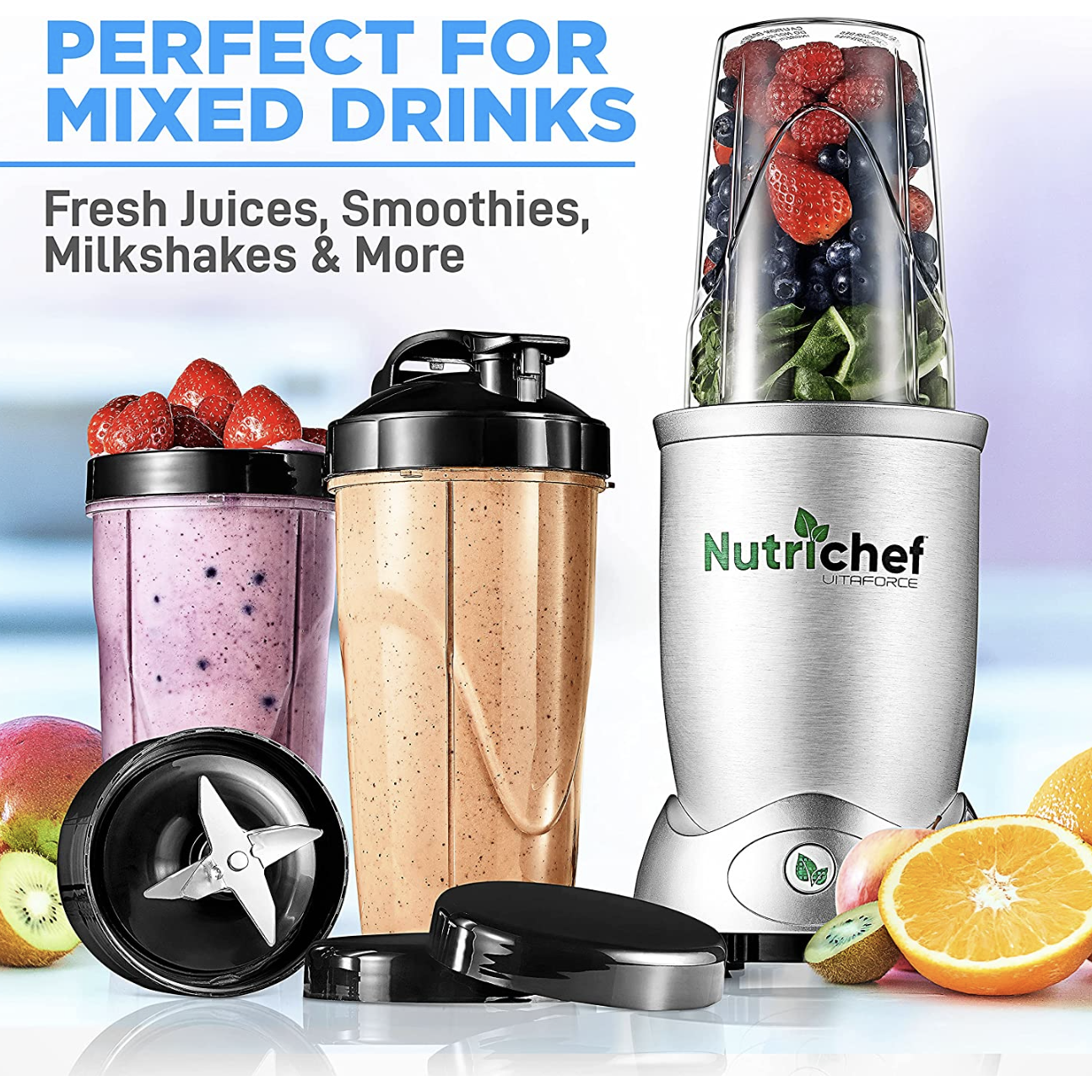 NutriChef Professional Home Kitchen Blender. Digital Countertop Power Pro Blender with Pulse Blend. 10 and 24 Oz Cups