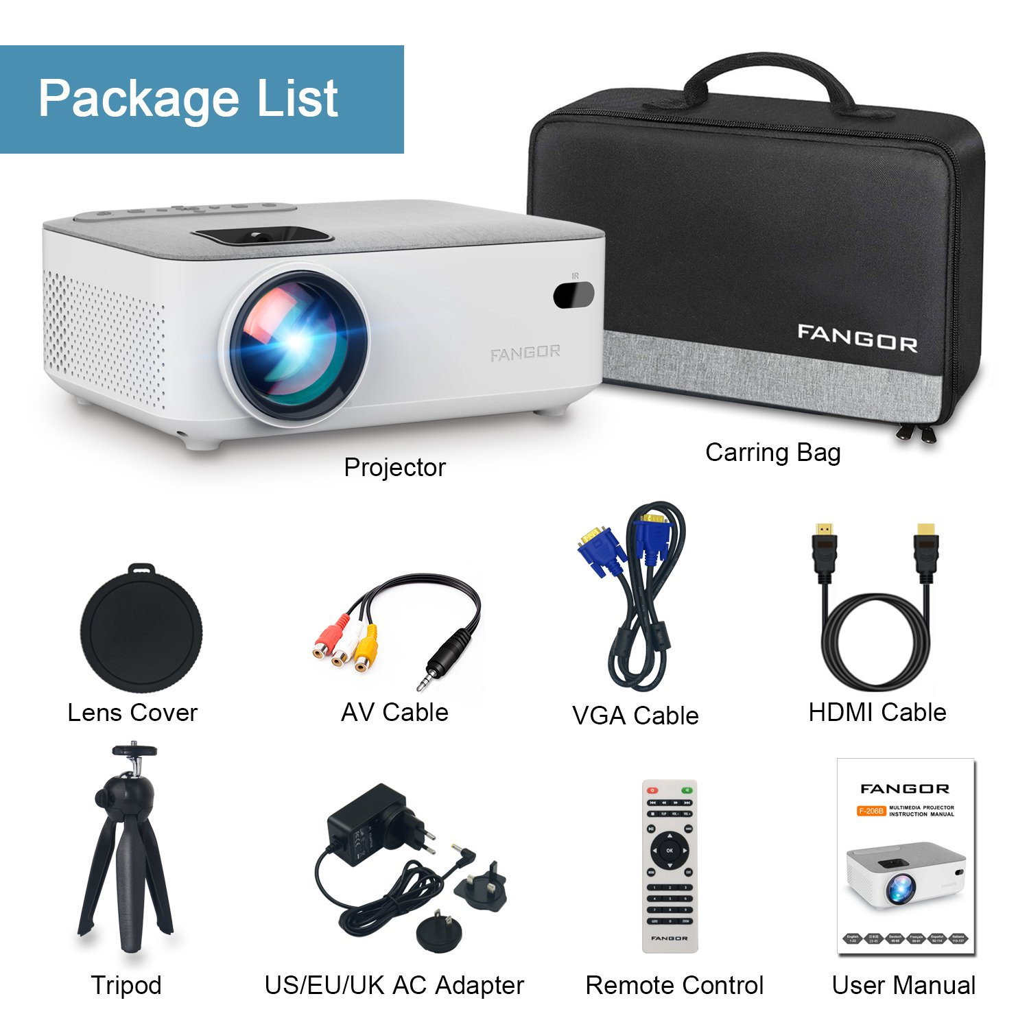 Fangor 206B Mini WiFi Projector. 1080p Support HD. Compatible with TV Stick. USB. Laptop. Free Projector Tripod Included