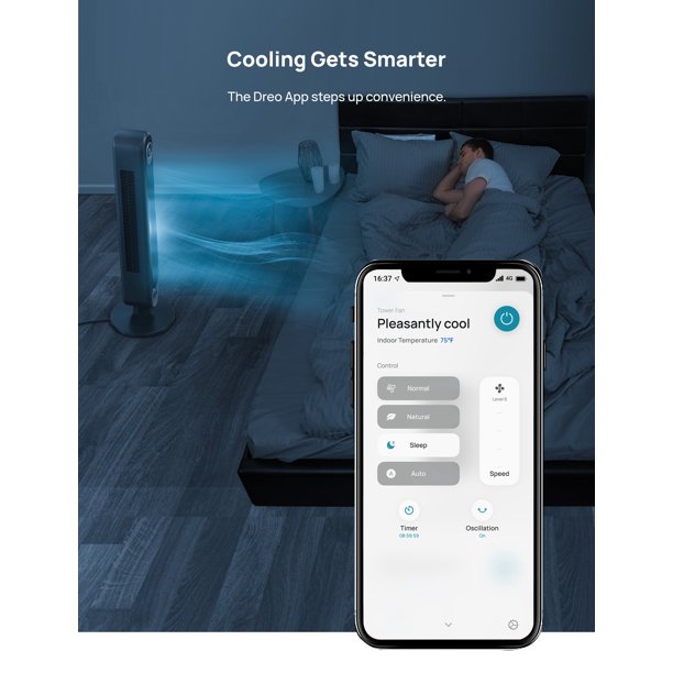 Dreo Tower Fan. Quiet Smart WiFi Fan With Remote. 90° Oscillating. Voice Control. 4 Modes. 4 Speeds
