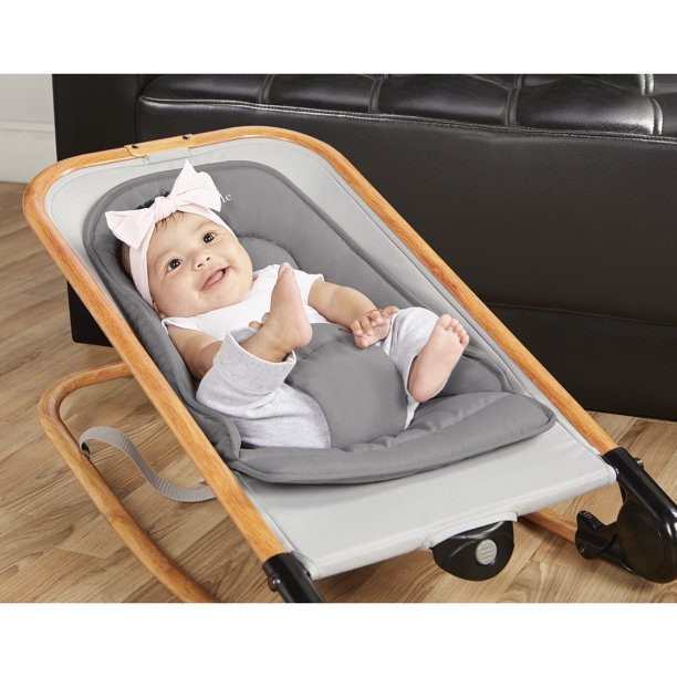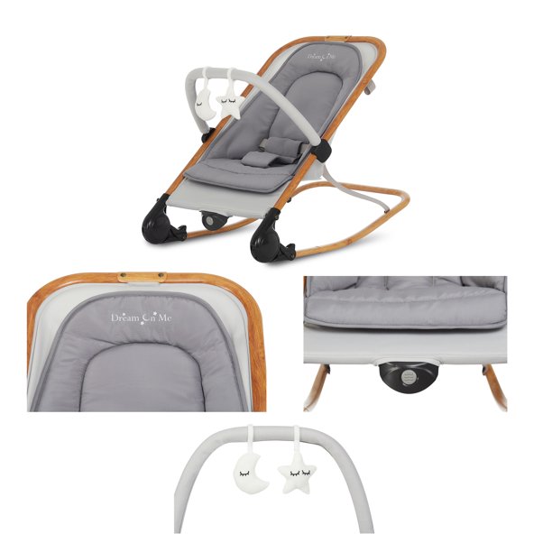 Dream On Me Rock With Me 2-In-1 Rocker And Stationary Seat. Compact Portable Infant Rocker. Gray