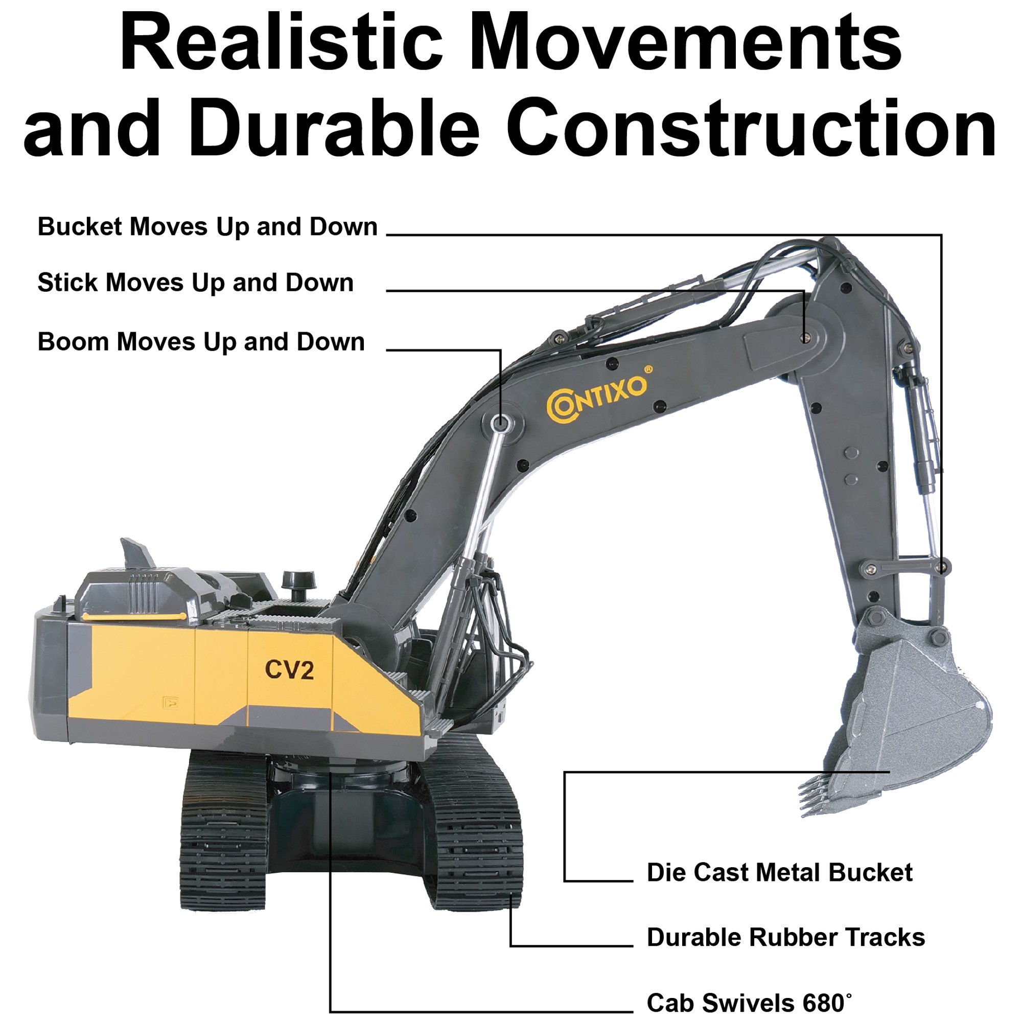 Contixo Remote Control Excavator 17 Channels Construction Vehicles with Metal Shovel RC. Rechargeable Battery CV2