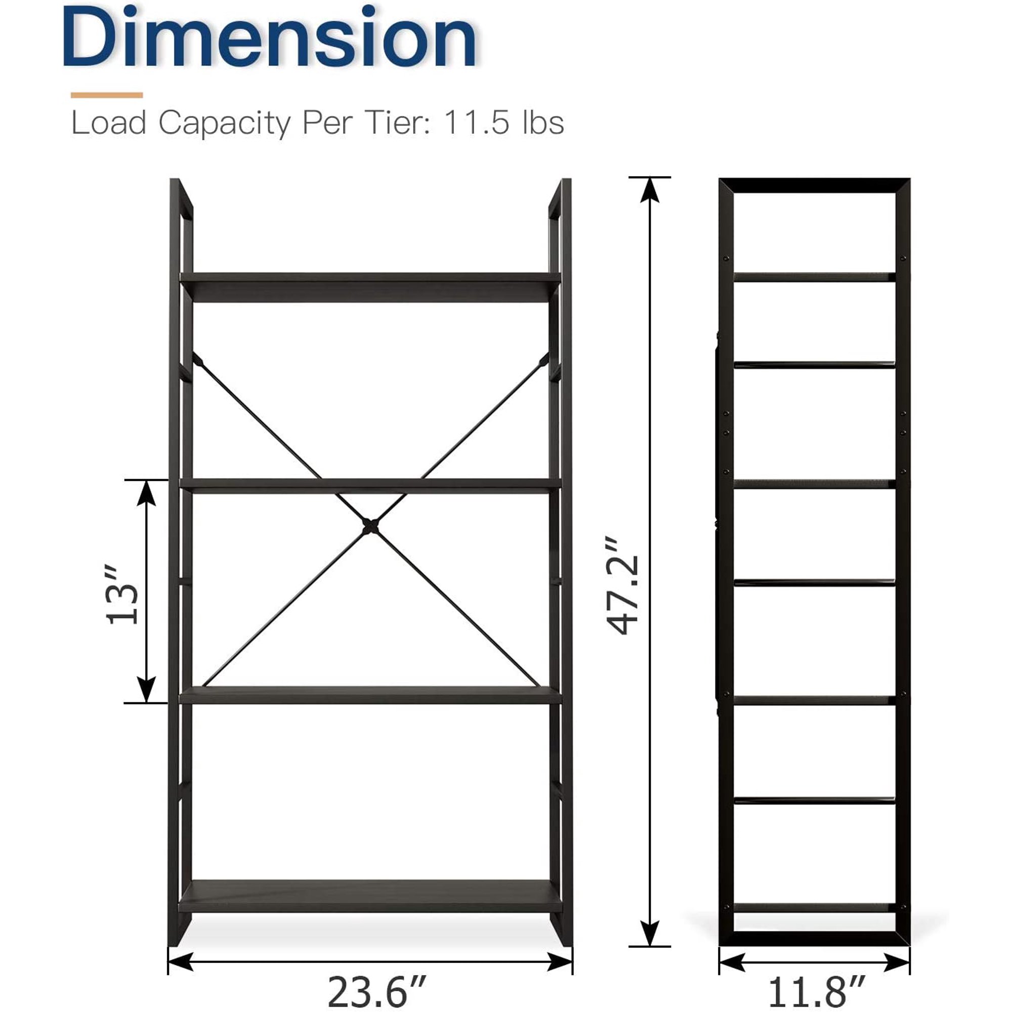 ODK 4-Shelf Ladder Bookshelf. Industrial Bookshelf. Metal frame and Wood Shelves Storage Furniture for Home Office. Black
