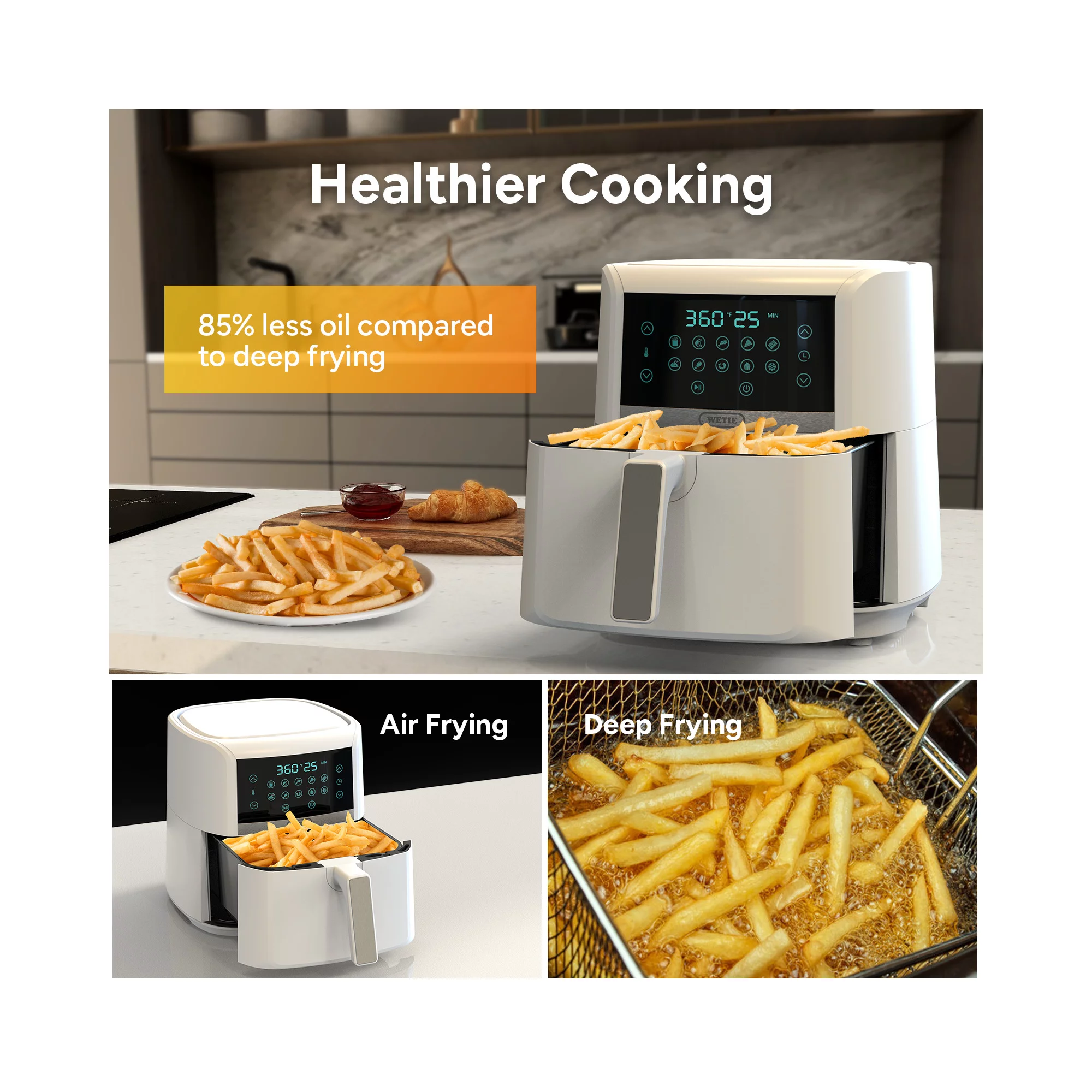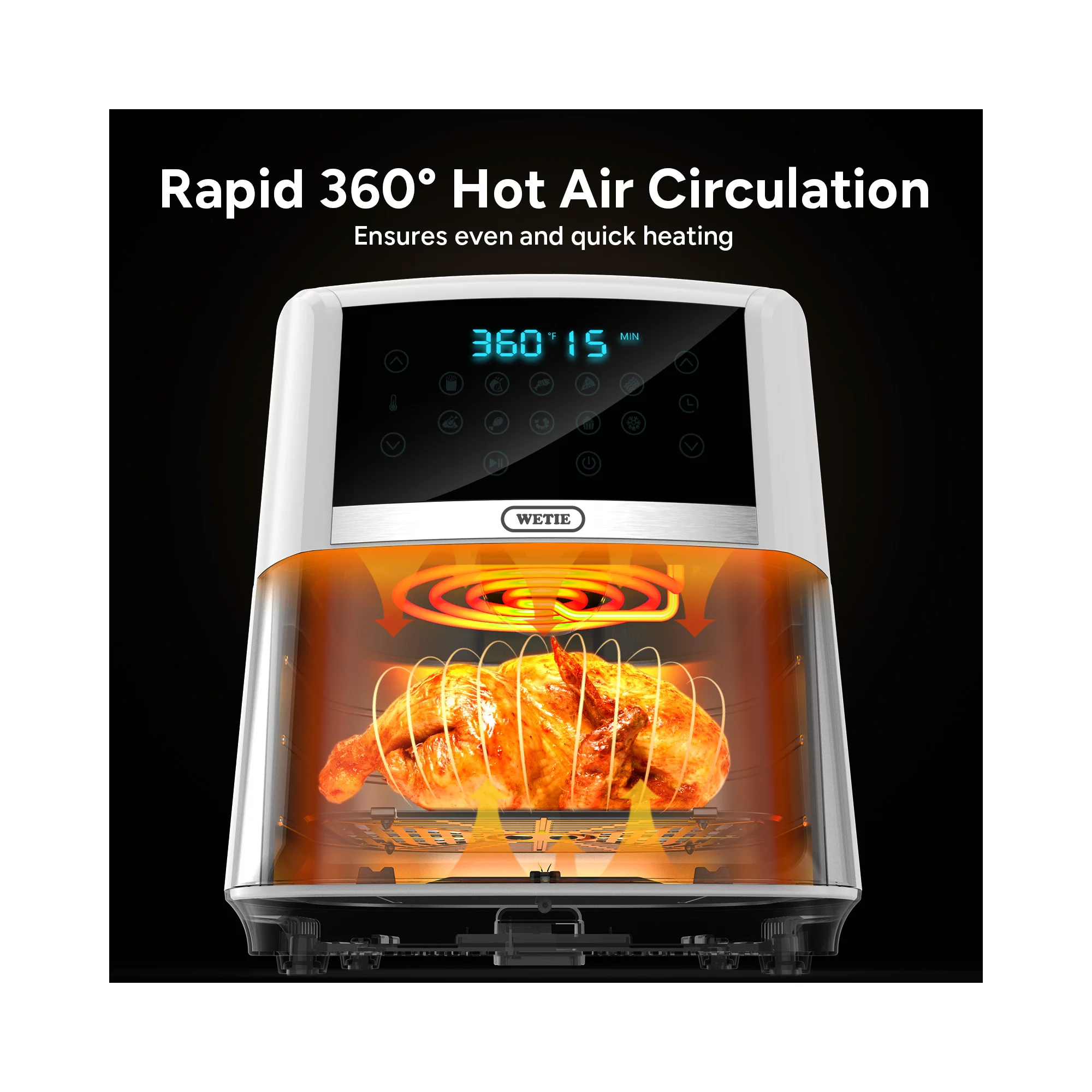 Wetie AF72 10-In-1 7.5 Quart Air Fryer Oven with Basket & Touch Panel. Recipe Included