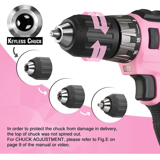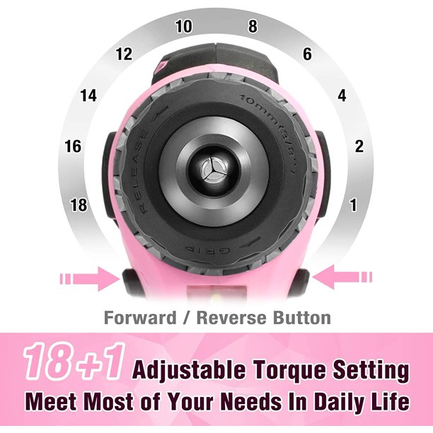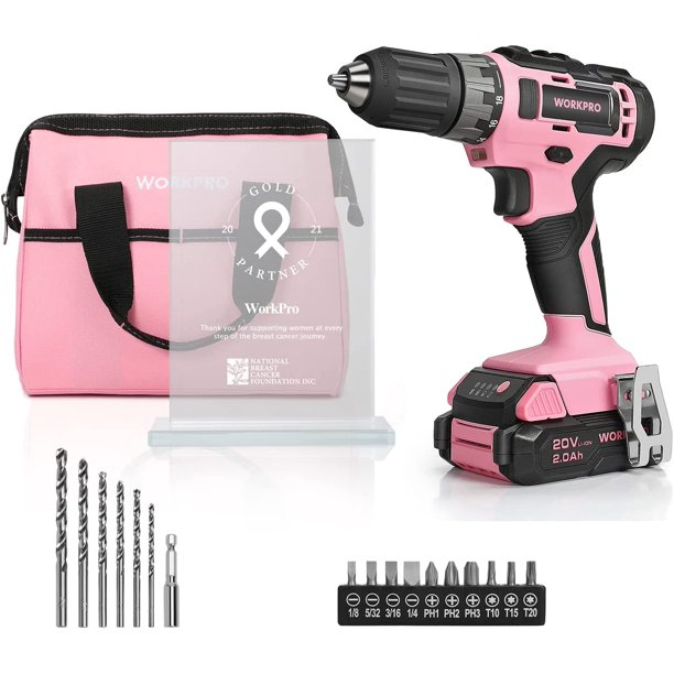 Workpro 20V Pink Cordless Drill Driver Set. 3/8 Keyless Chuck. 2.0 Ah Li-Ion Battery. Pink