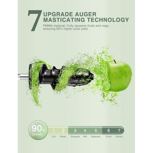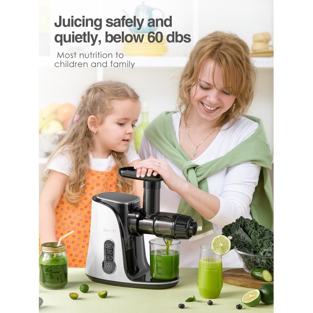 Brewsly Slow Masticating Juicer Extractor with 2-Speed Modes & Quiet Motor. White