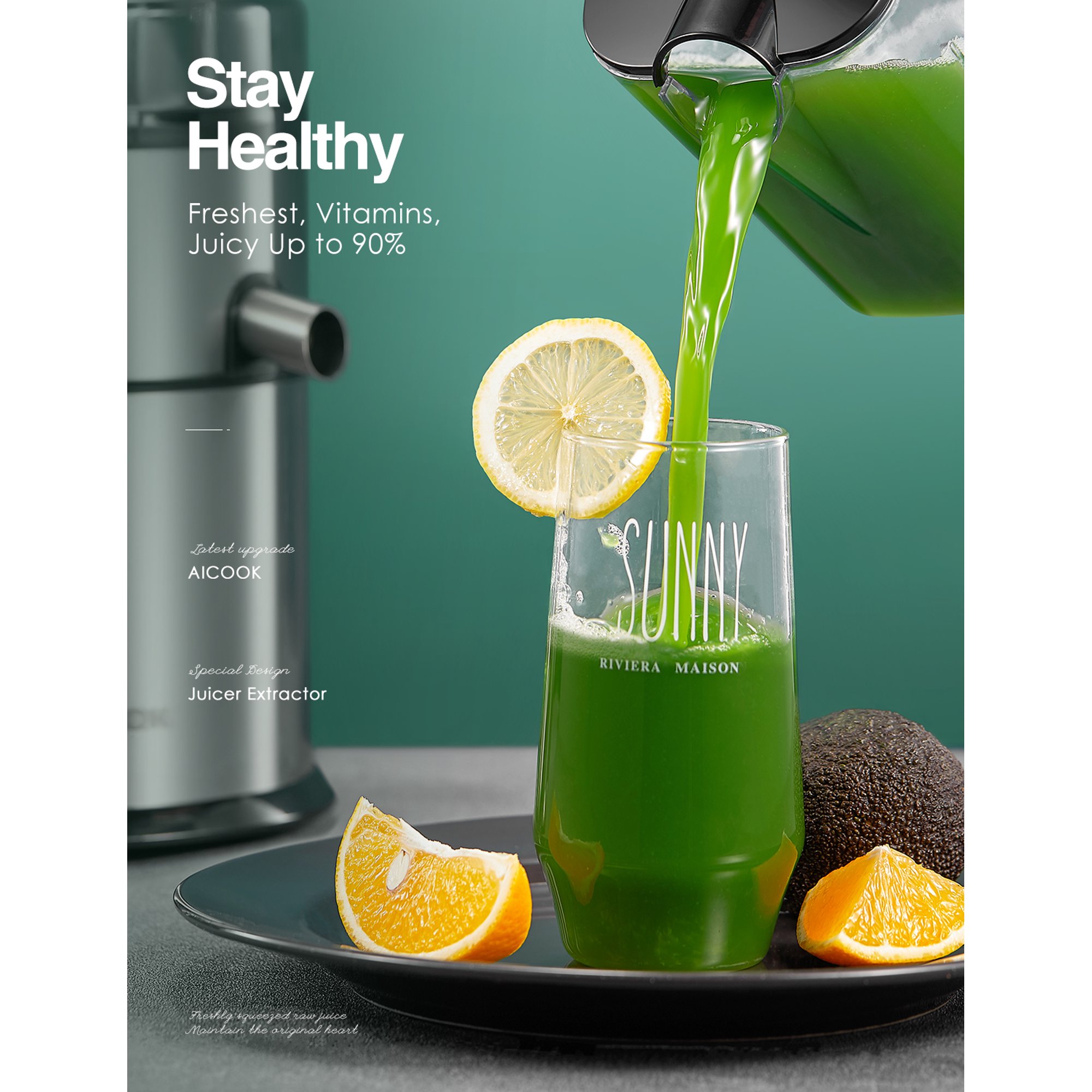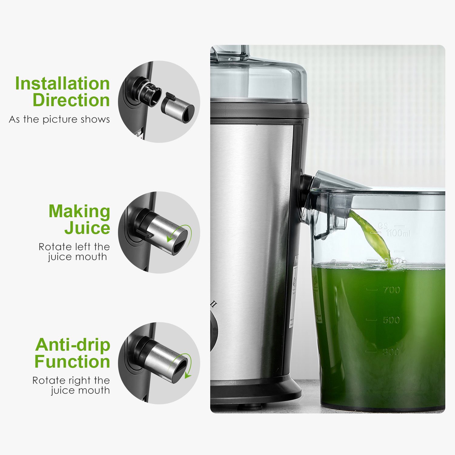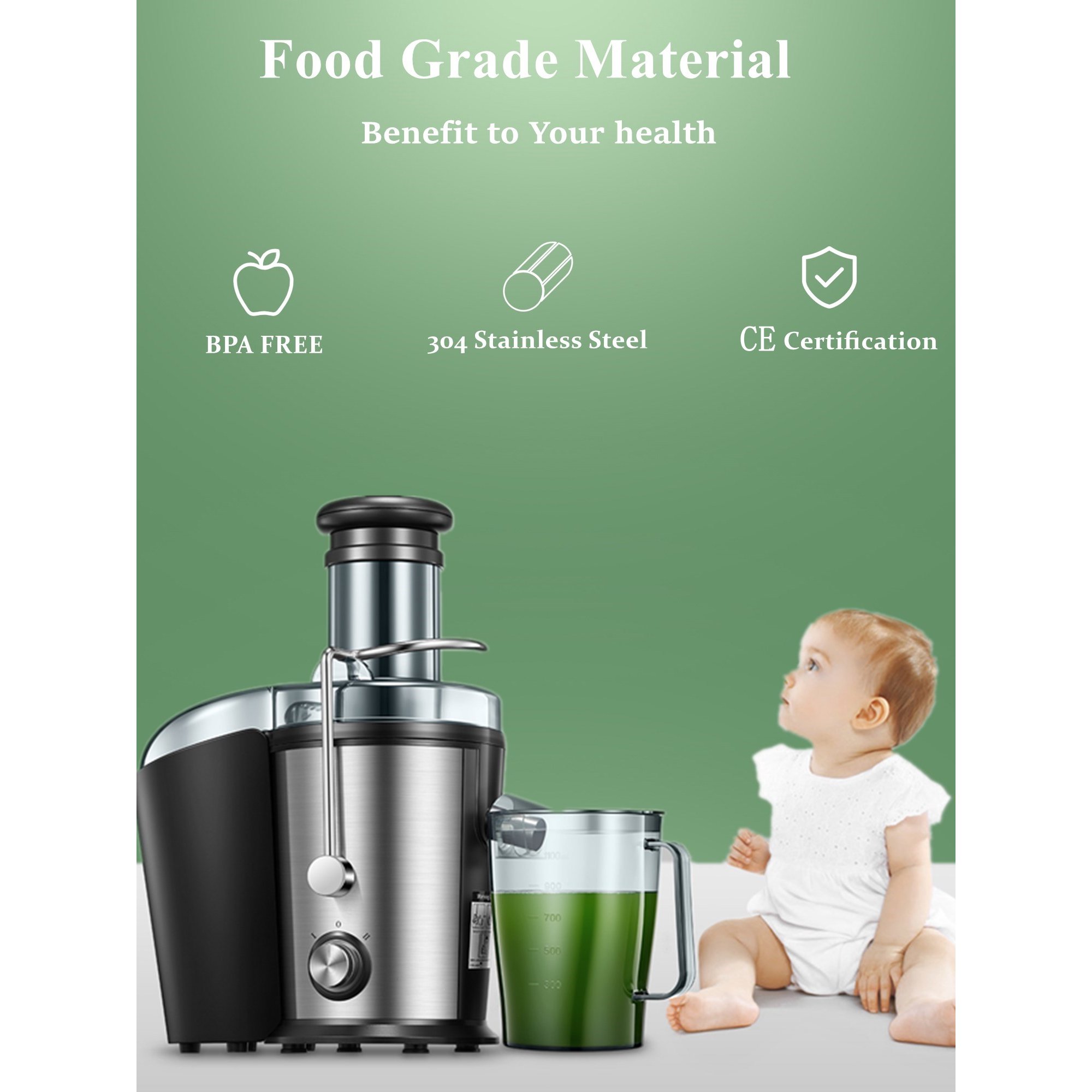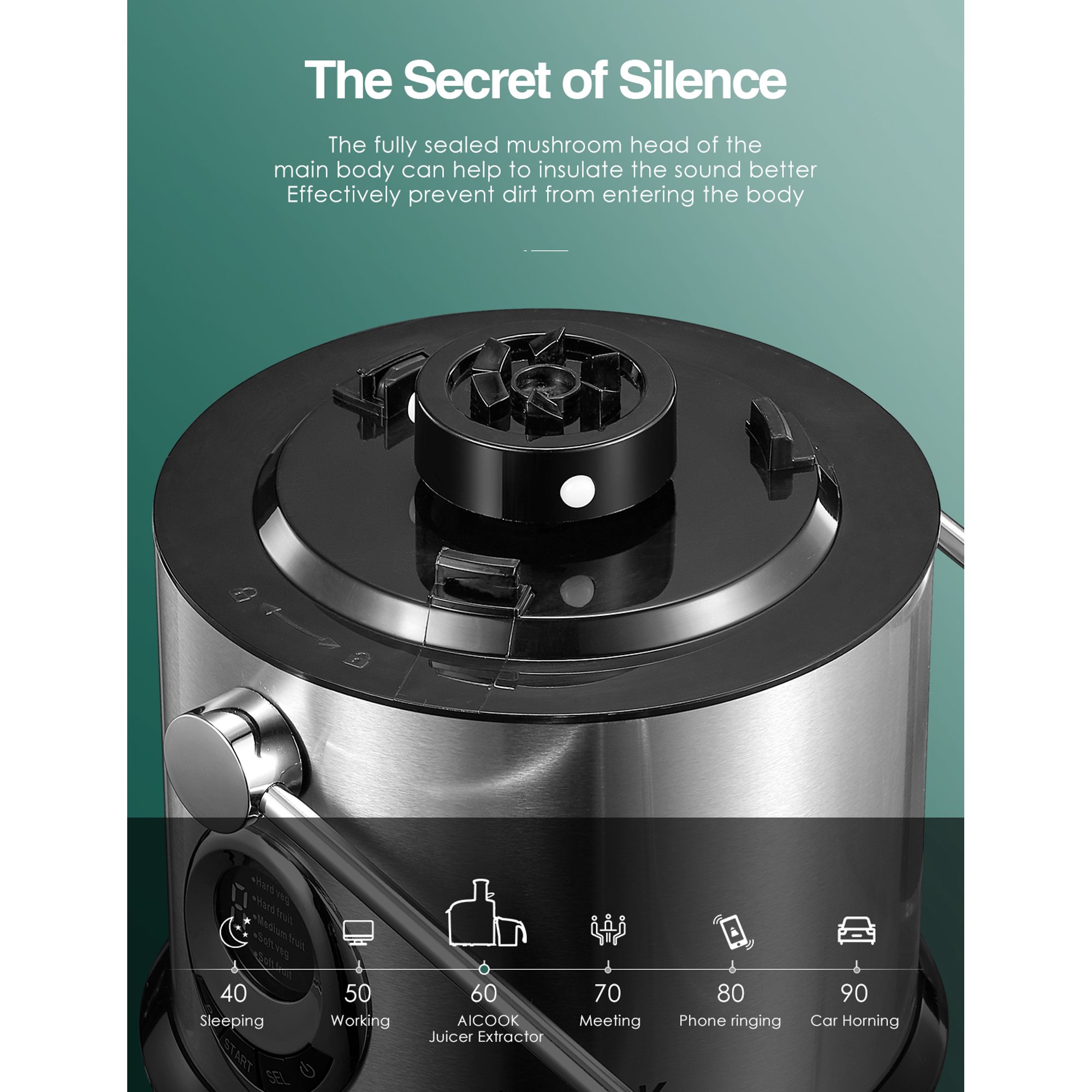 Aicook 800W Juicer Machines. LED Display Control. Easy to Clean. Silver