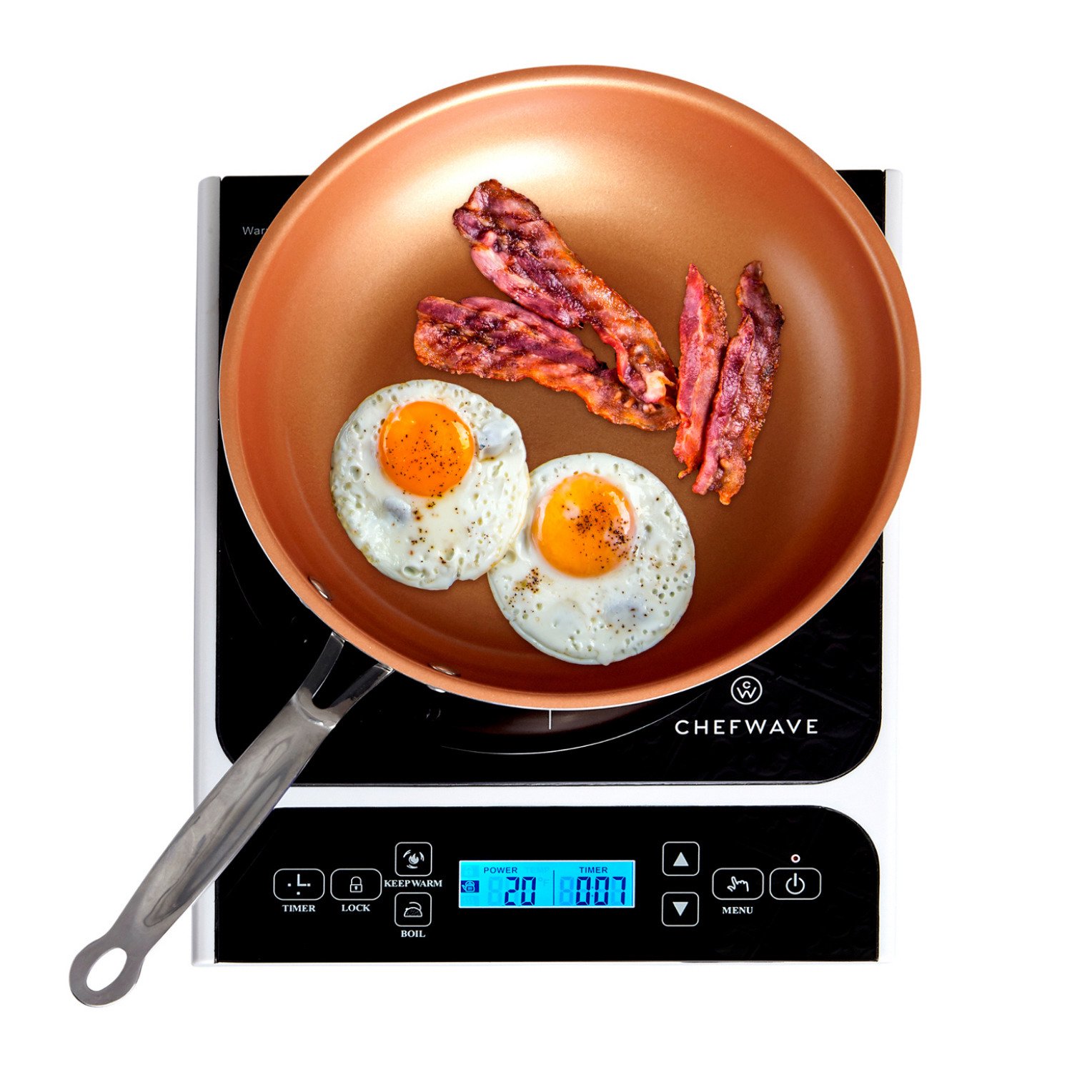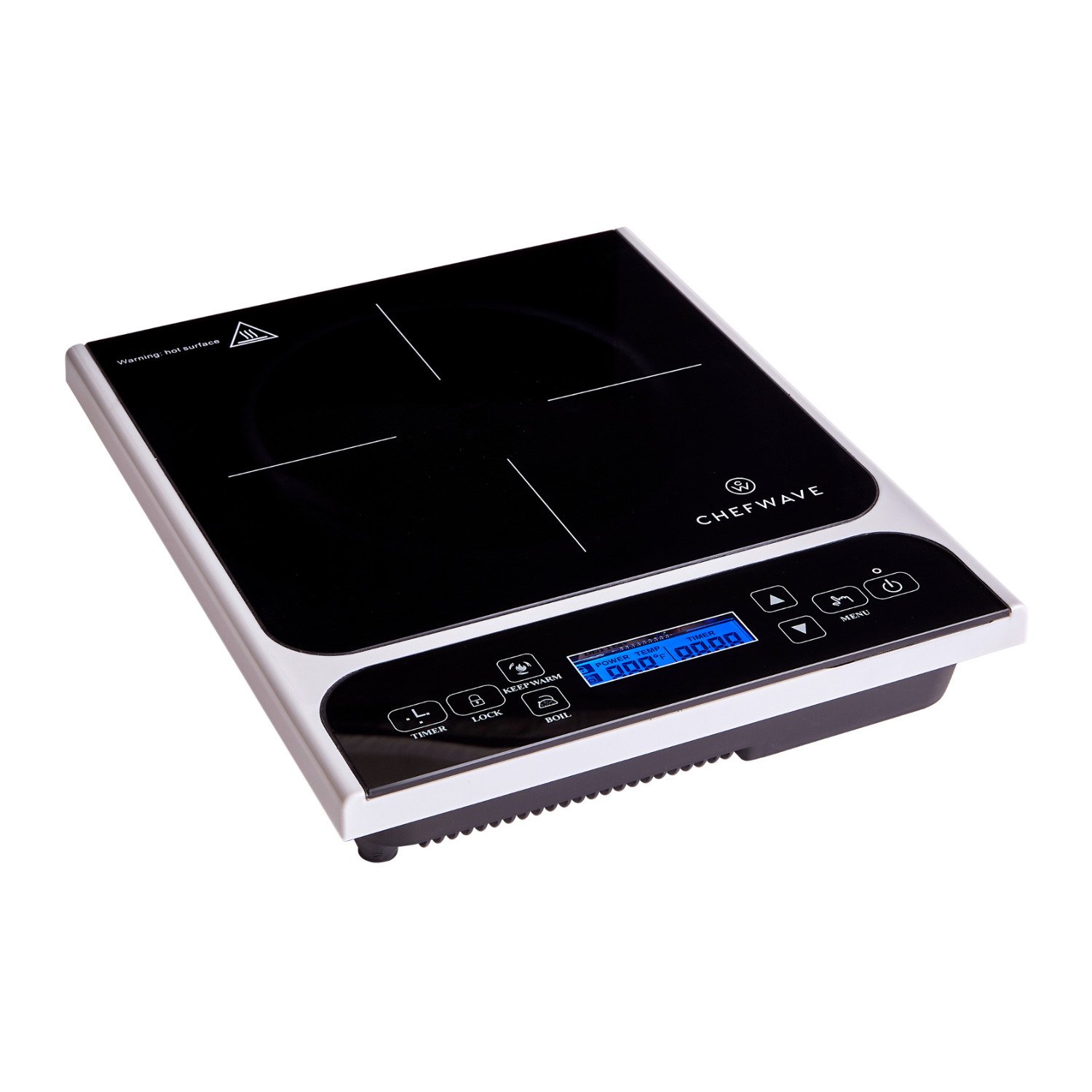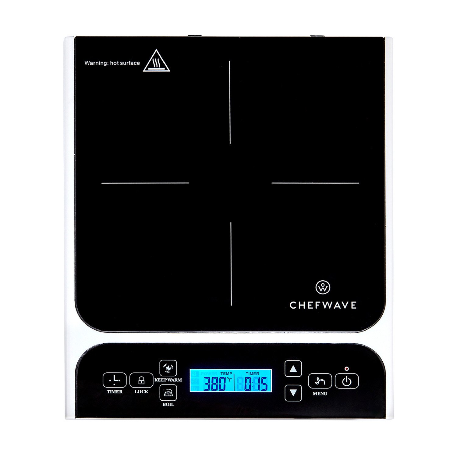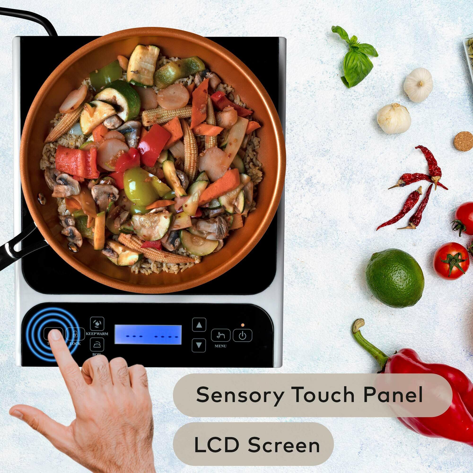 ChefWave LCD 1800W Portable Induction Cooktop with Safety Lock. Bonus 10-in Fry Pan