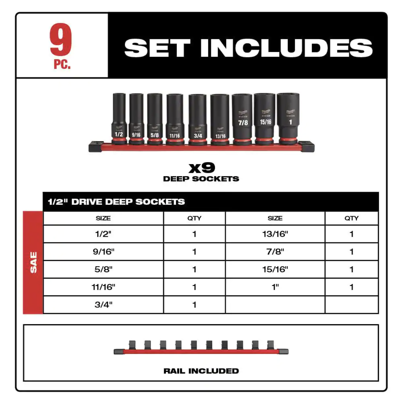 Milwaukee M18 FUEL 18V Lithium-Ion Brushless Cordless 1/2 in. Impact Wrench with SAE Deep Well Impact Socket Set (9-Piece)